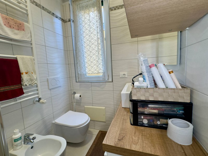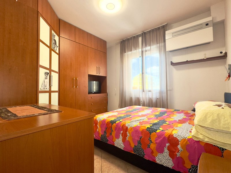 Attraverso un un disimpegno che divide la zona giorno da quella notte si accede alla camera da letto matrimoniale ed al bagno finestrato, dotato di cabina doccia e sanitari sospesi. Tutte le porte interne sono scorrevoli, soluzione che ottimizza gli spazi e dona unestetica moderna allintero appartamento. L'immobile si presenta in ottime condizioni interne grazie alla recente ristrutturazione e offre finiture di qualità: Infissi in PVC con doppi vetri, tapparelle elettriche, riscaldamento autonomo, impianto di climatizzazione Wind Free in soggiorno e camera da letto.