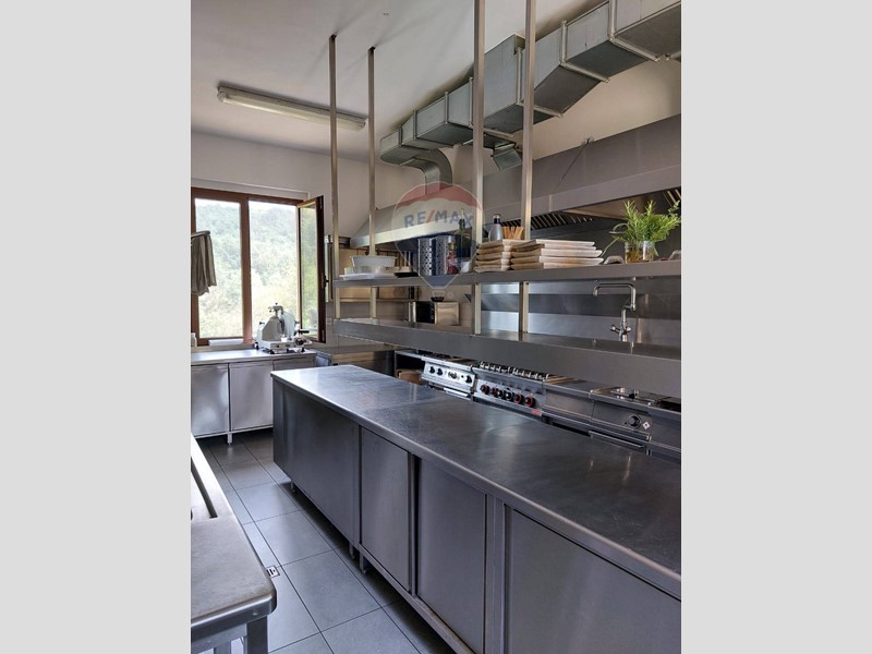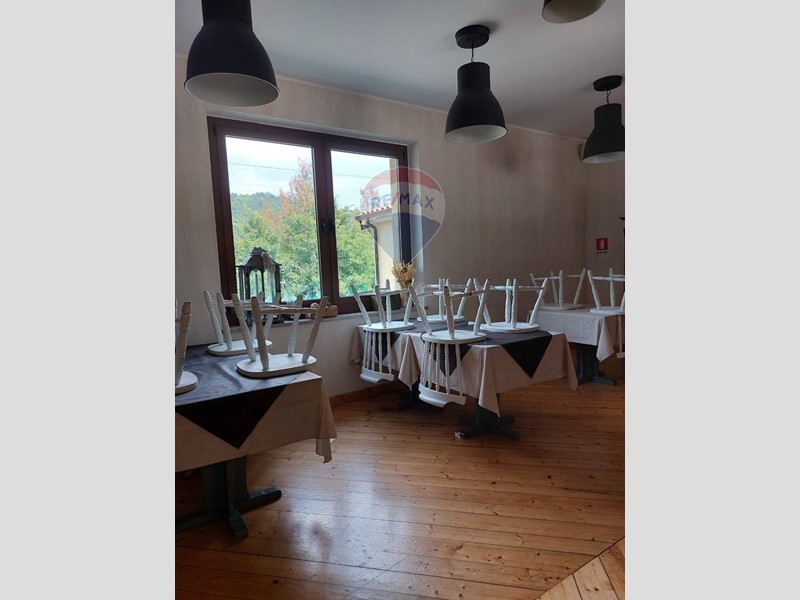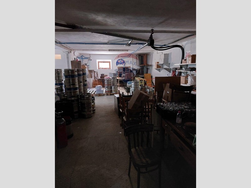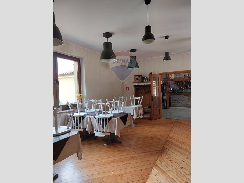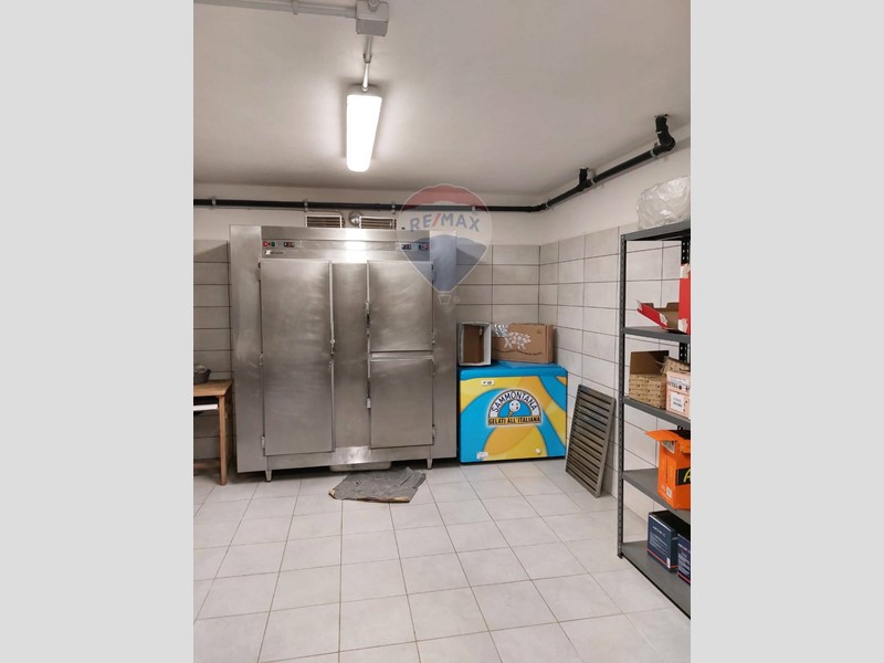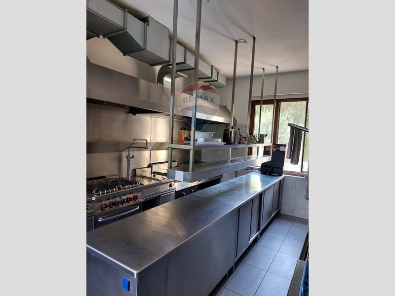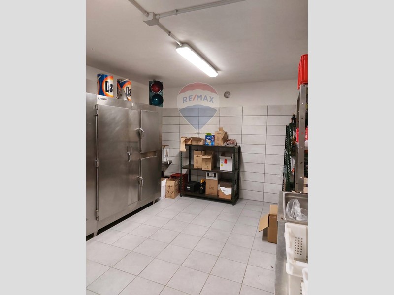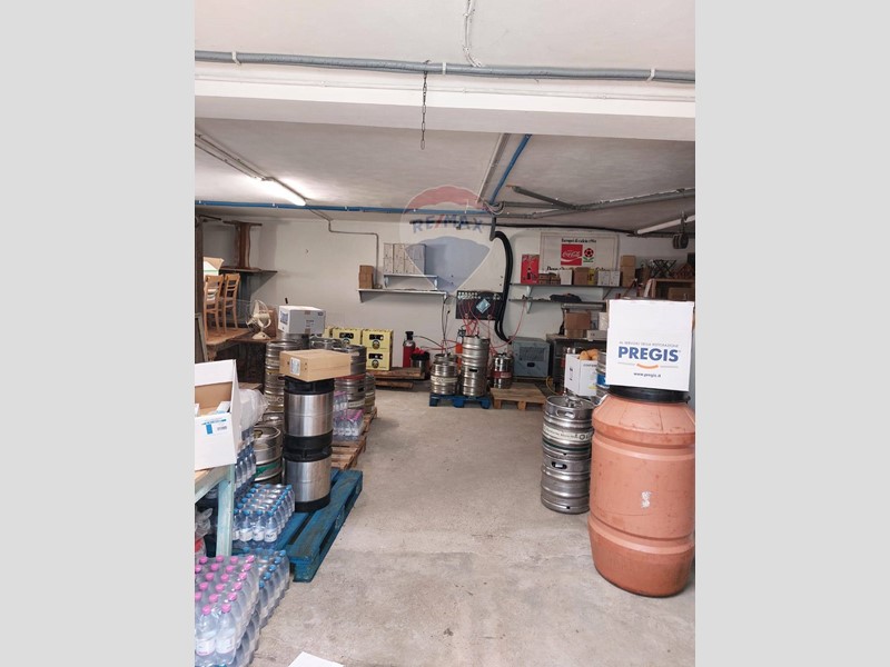 La proprietà si divide in ristorante al piano terra (con tutte le pertinenze annesse) di mq 119 e deposito/magazzino/garages nel seminterrato di mq 153 che può diventare anche un laboratorio dove produrre alimenti. C'è anche un'entrata mezzi per carico scarico.