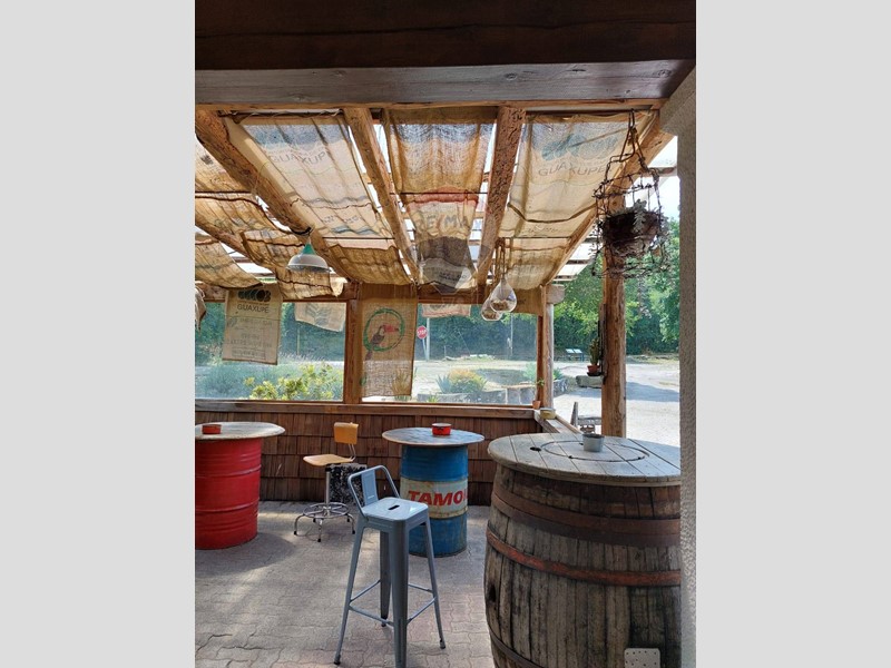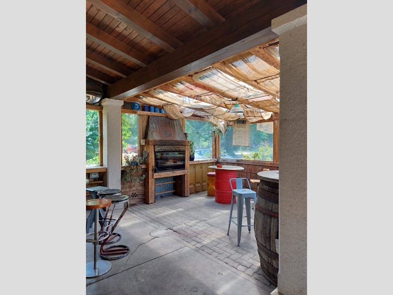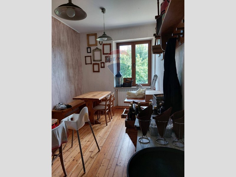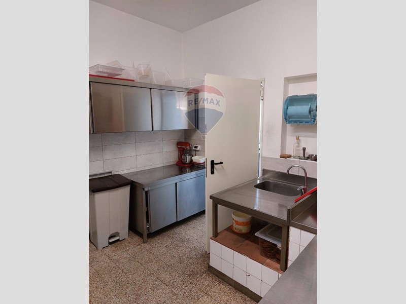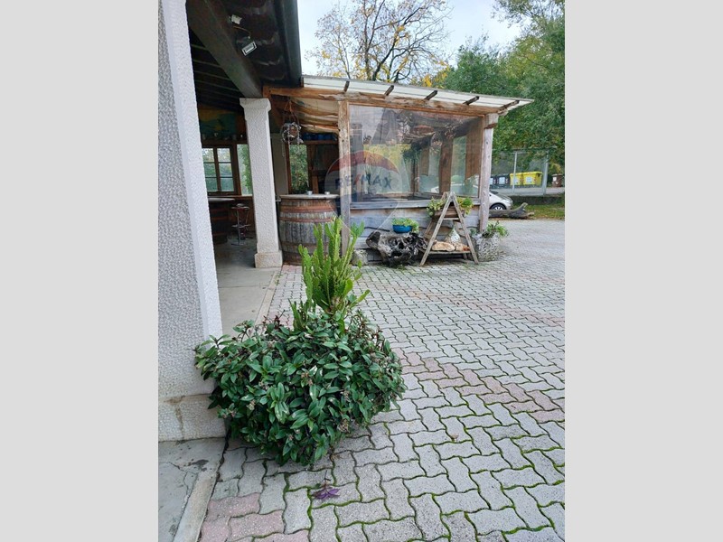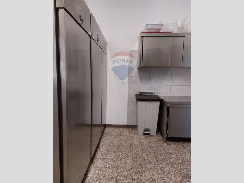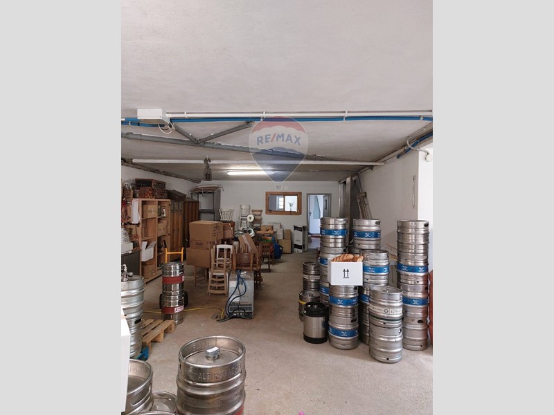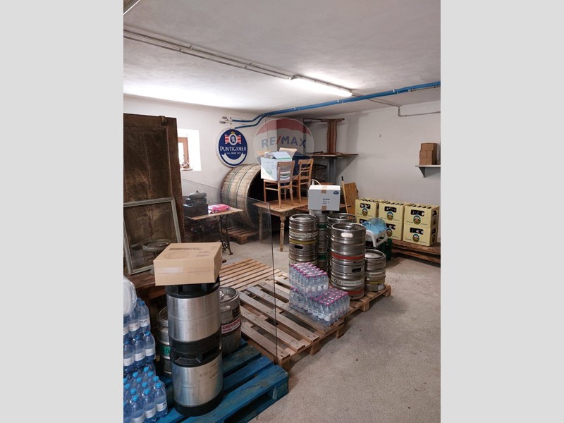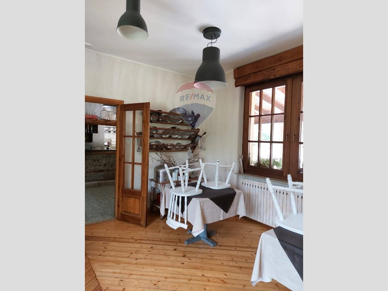 La proprietà si divide in ristorante al piano terra (con tutte le pertinenze annesse) di mq 119 e deposito/magazzino/garages nel seminterrato di mq 153 che può diventare anche un laboratorio dove produrre alimenti. C'è anche un'entrata mezzi per carico scarico.