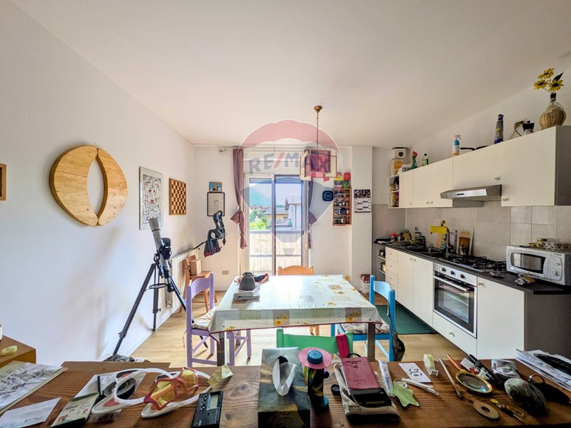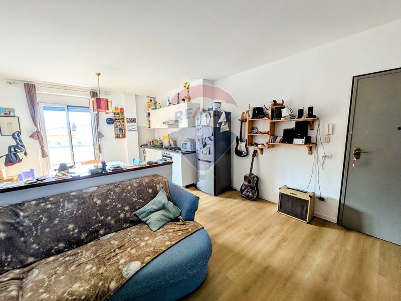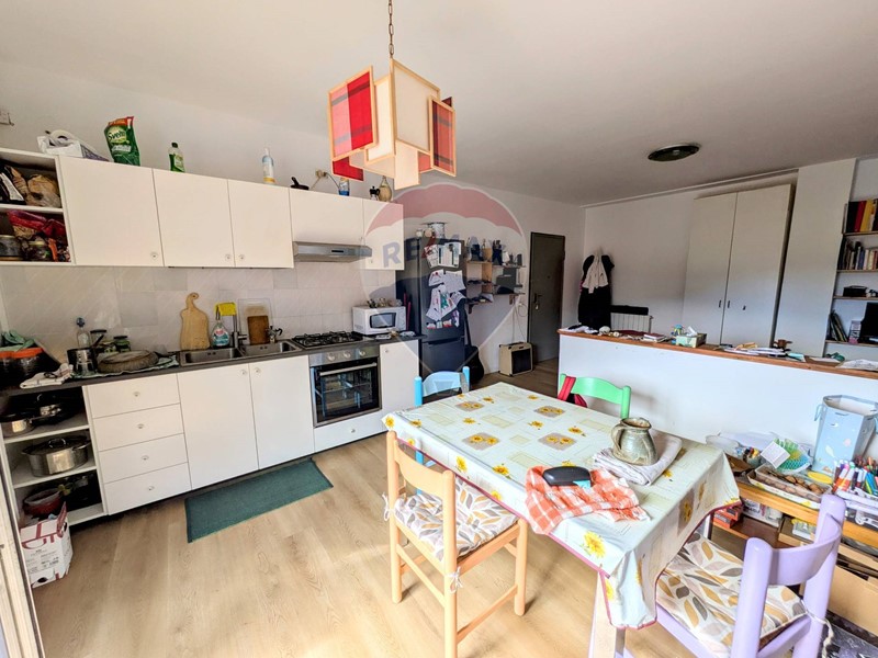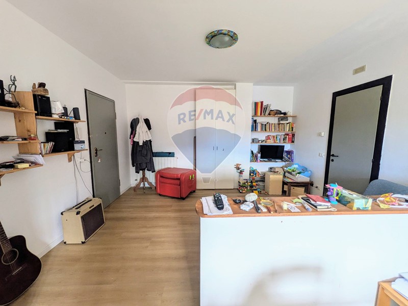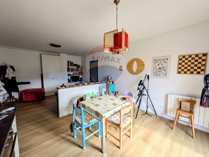 Lappartamento, esposto a sud-est e quindi naturalmente luminoso durante tutta la giornata, gode di un piacevole affaccio sul verde e sulle montagne circostanti. Lingresso conduce a un ampio soggiorno che integra zona living, area pranzo e cucina a vista, con accesso diretto allo spazio esterno. Un disimpegno separa la zona giorno dalla camera matrimoniale, rifinita con parquet, e dal bagno finestrato completo di angolo lavanderia.