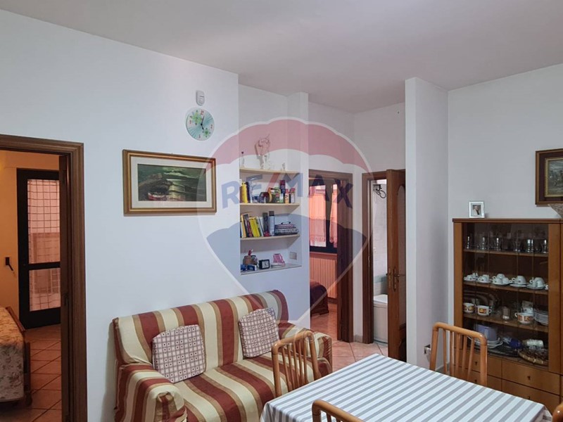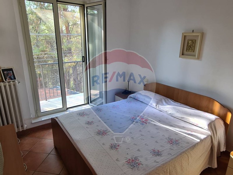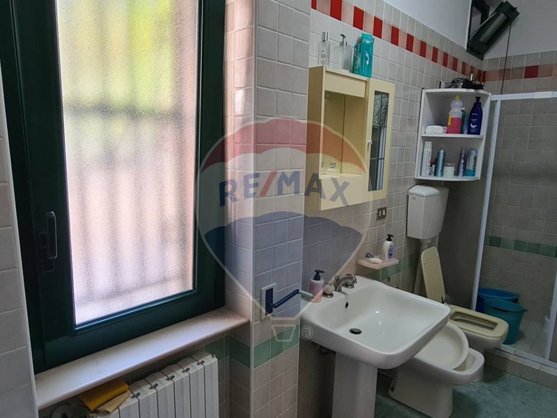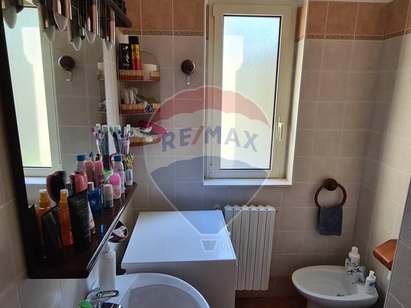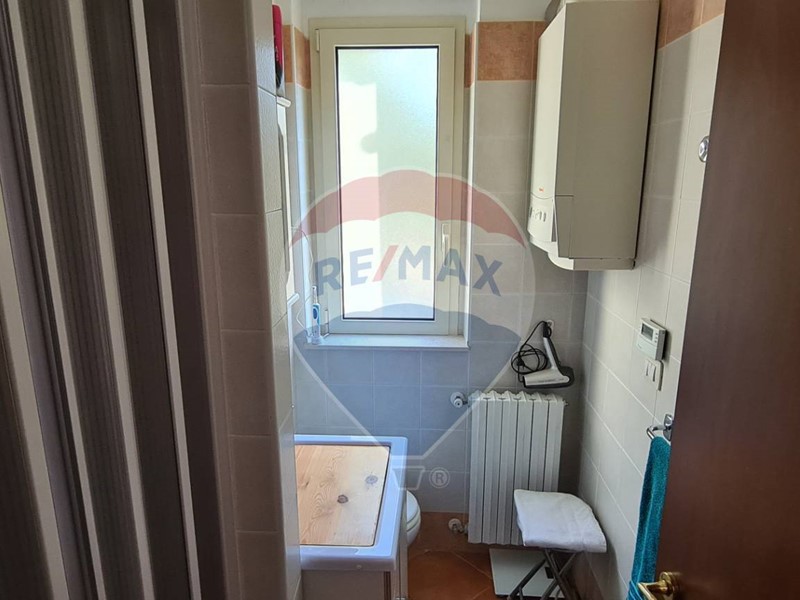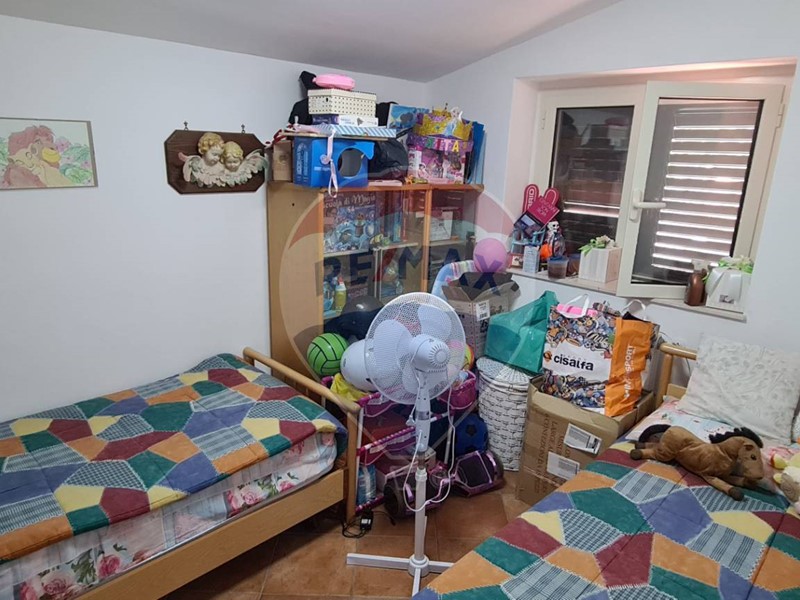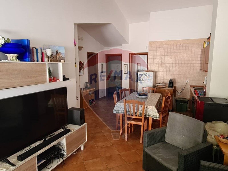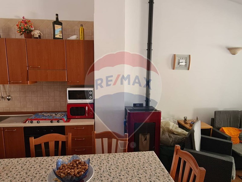 L'appartamento al primo piano, di circa 70 mq, dispone di sala da pranzo e cucina in ambiente unico, tre camere doppie, servizi e vano lavanderia. Inoltre, è dotato di stufa a pellet e climatizzatori. All'esterno abbiamo un ampia veranda parzialmente coperta da tende parasole.