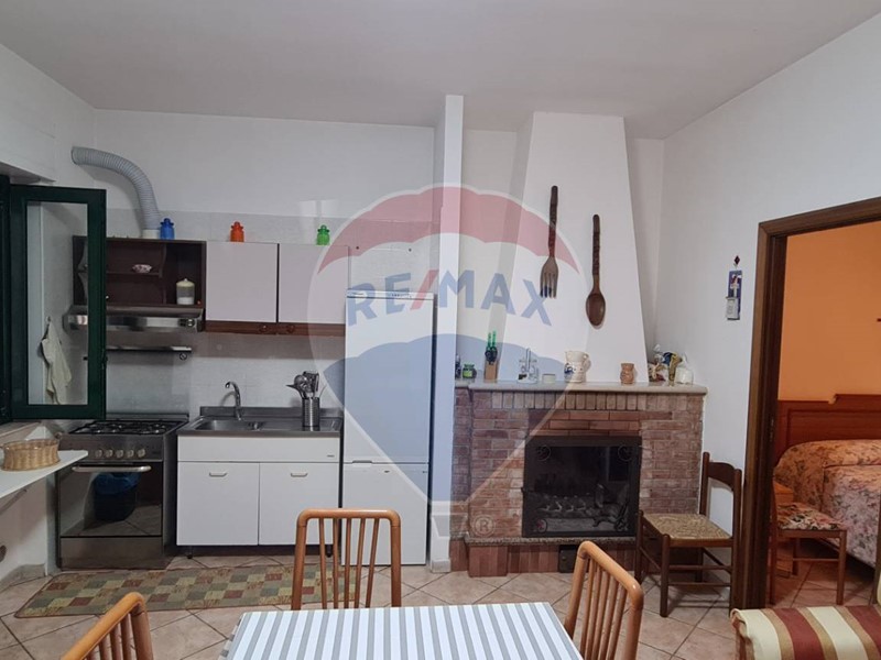L'appartamento al piano terra, di 50 mq abitabili, dispone di sala da pranzo con camino e cucina a vista, due camere da letto e bagno. Nel retro abbiamo un locale rustico di circa 40 mq completo di forno a legna, due ripostigli capienti e servizi.