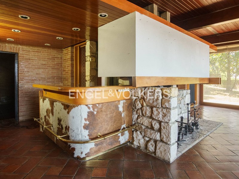 Un ulteriore livello ospita la grande taverna con camino in muratura, angolo bar, una seconda cucina a isola e diversi ambienti che possono essere personalizzati come hobby room, spazi ricreativi o zone benessere.
