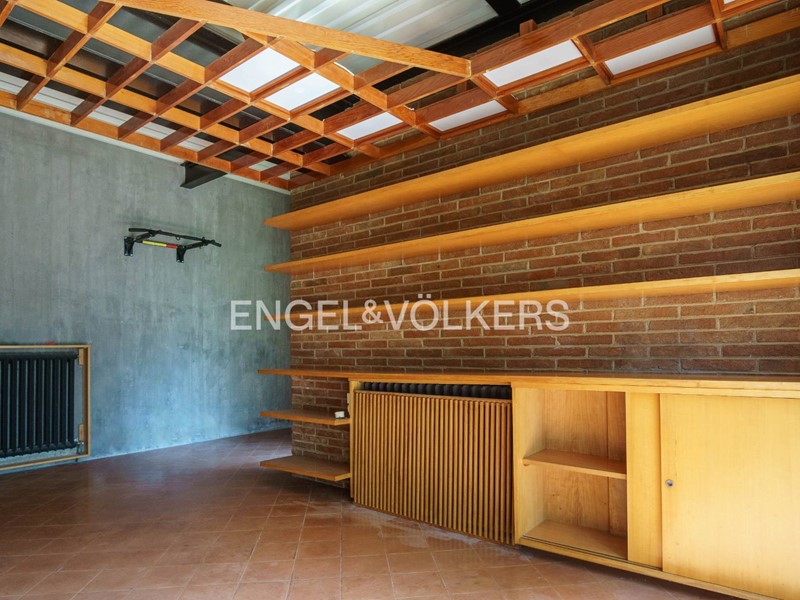 Il piano seminterrato è pensato come area relax e accoglienza: una camera con bagno privato, ambienti versatili perfetti per palestra o studio, e laccesso diretto al giardino.