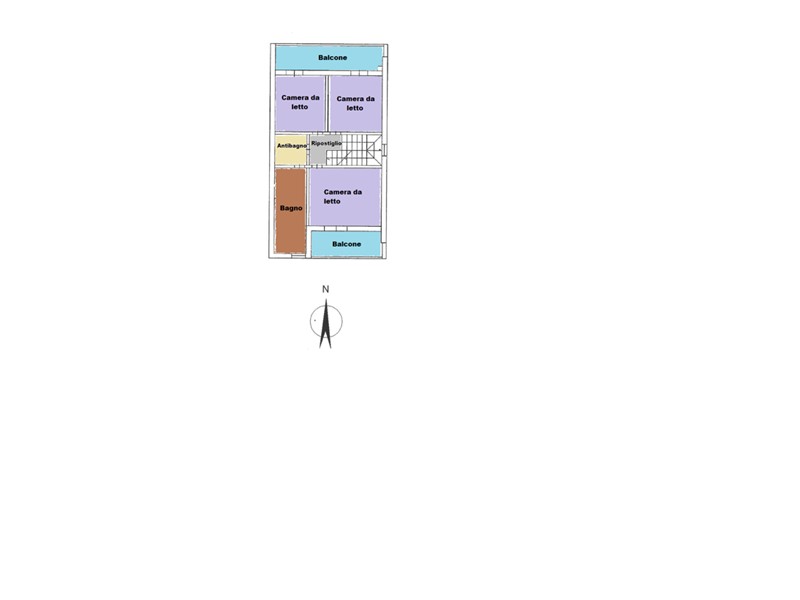 Al piano primo è presente la zona notte con tre camere da letto, un bagno e due balconi.
