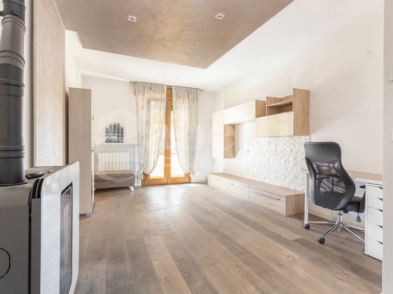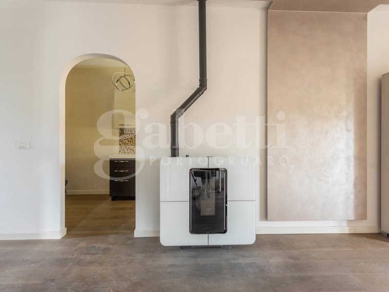 Recentemente ristrutturato con finiture moderne: infissi in PVC con doppio vetro, pavimenti in SPC effetto legno, stufa a pellet per un riscaldamento efficiente e controsoffitti con luce integrata, che valorizzano gli spazi con piacevoli giochi di luce.