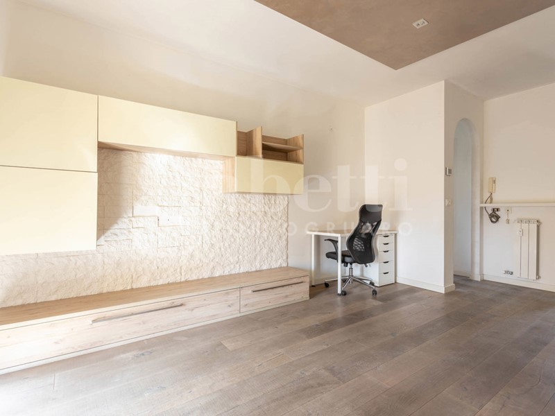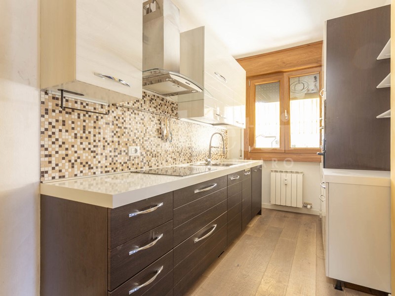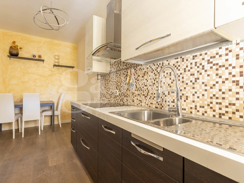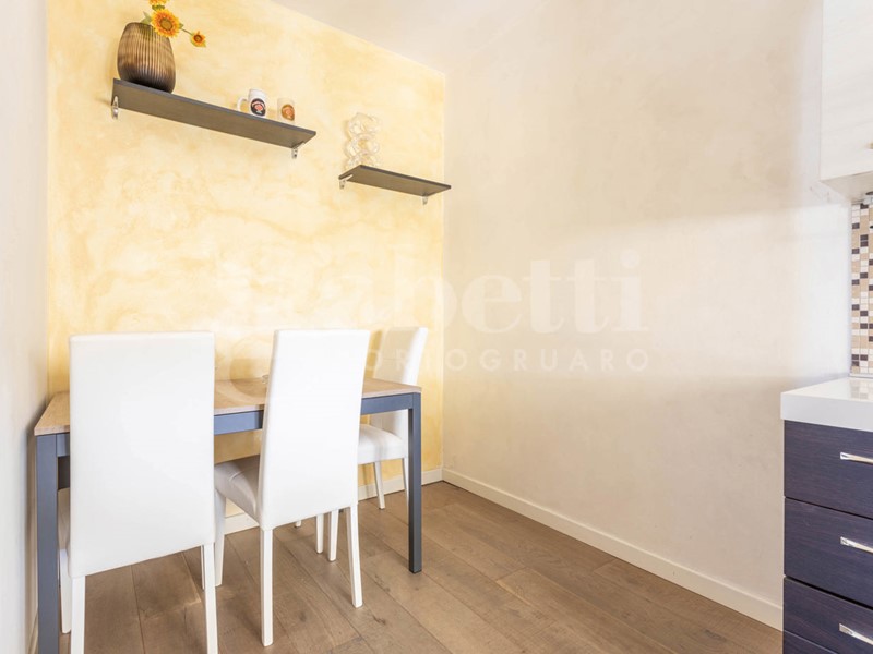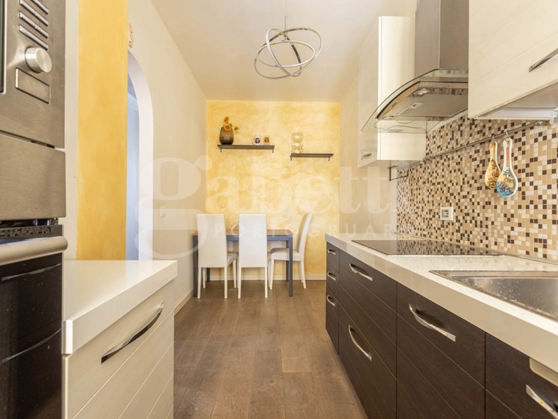 Gli ambienti sono ben distribuiti e funzionali: dall'ingresso si accede a un corridoio attrezzato con pratici vani ripostiglio, che conduce alla zona giorno luminosa, composta da un soggiorno indipendente con accesso al terrazzino esterno e da una cucina abitabile, completa di arredo moderno di recente installazione.