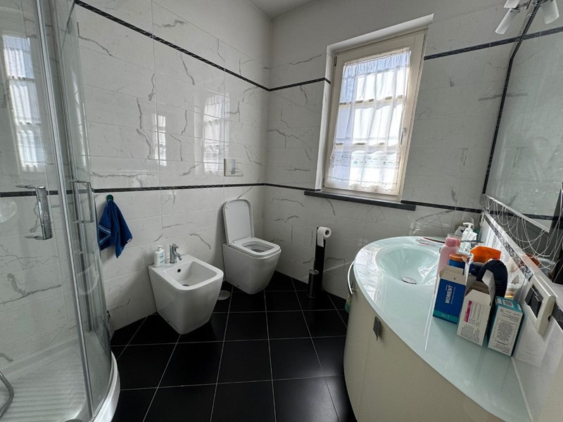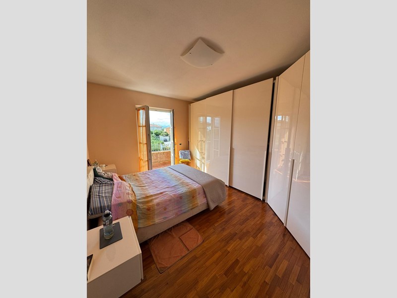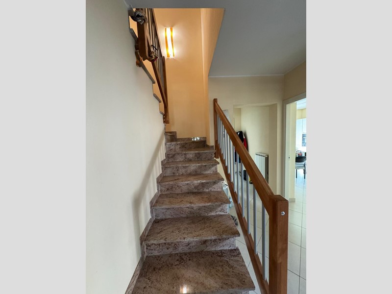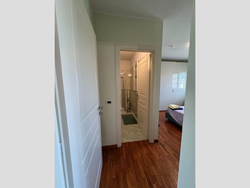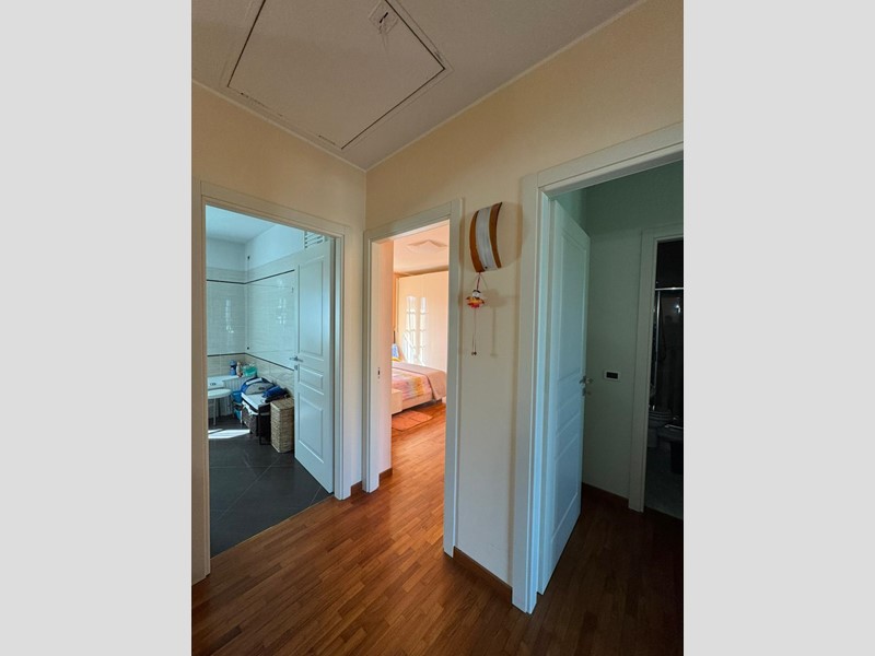 La villa si sviluppa su due livelli. Al piano terra troviamo un ampio e luminoso soggiorno, dove è stato ricavato un angolo studio, una spaziosa cucina abitabile, un disimpegno e un bagno finestrato con doccia. Attraverso una comoda scala interna si accede al piano superiore, dove si sviluppa la zona notte composta da due camere matrimoniali, di cui una con bagno privato e terrazzo, una camera singola anch’essa con terrazzo, e un ulteriore bagno a servizio del piano.