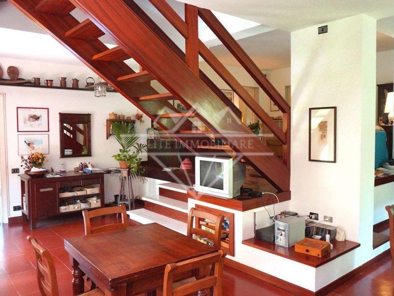 Dal soggiorno principale salendo lungo una bella scala di legno, si accede al primo piano dove si trovano 2 ampie camere, di cui una con bagno ensuite, entrambe con terrazza che affaccia sul giardino. Al secondo piano, infine, si trova una grande camera con camino in ceramica, cabina armadio e bagno ensuite, anche questa affacciata sul giardino.