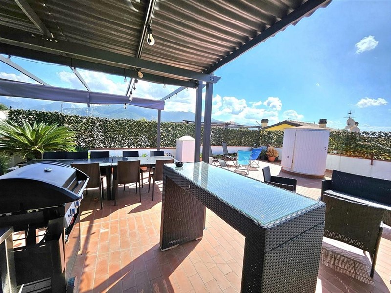 Marina di Massa Appartamento ristrutturato con ampia terrazza pranzabile a 1.500 metri dal mare In zona tranquilla e residenziale di Marina di Massa; nelle vicinanze della Piscina comunale del Viale Roma, comodo a tutti i principali servizi, proponiamo in vendita un appartamento ristrutturato situato al primo e ultimo piano di una piccola palazzina. L'immobile, di circa 70 mq, si compone di: ingresso su luminoso soggiorno-pranzo, cucinotto separato, bagno finestrato con doccia, due camere da letto matrimoniali e una terrazzina pranzabile perfetta per colazioni all’aperto o cene estive. Da qui si accede ad un vero gioiello della casa: una spettacolare terrazza di circa 60 mq con vista aperta fino alle Alpi Apuane, ideale per rilassarsi, prendere il sole o ricevere ospiti. Dotato di impianto di climatizzazione e sistema di allarme perimetrale, l'appartamento è pronto per essere abitato senza necessità di interventi. A completare l'offerta troviamo un posto auto assegnato in area protetta e una cantina di proprietà. Un'opportunità ideale sia come casa vacanze che come abitazione principale. Trattato ad euro 255.000 Classe energetica G – EPgl,nren 210,86 – EPgl,ren 0,58 – inverno bassa – estate bassa)