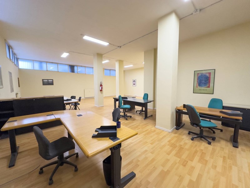 In elegante palazzina con portineria, grande ufficio, completamente open space, al piano seminterrato dotato di scrivanie e impianto di illuminazione, pronto per essere utilizzato senza necessitare di interventi. Possibilità di accesso anche dal cortile condominiale per carico e scarico. Locazione non soggetta ad iva.