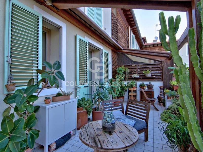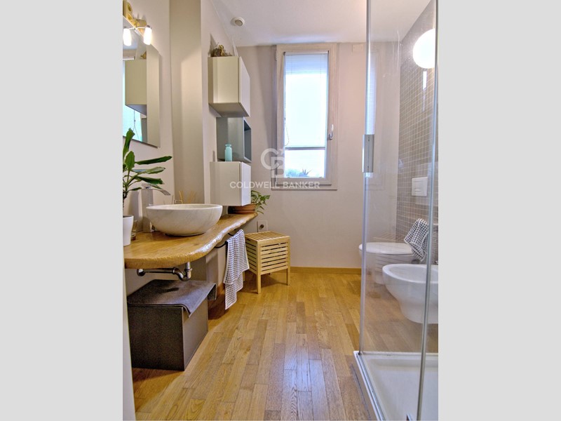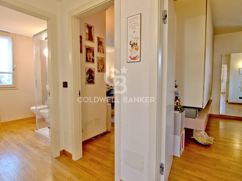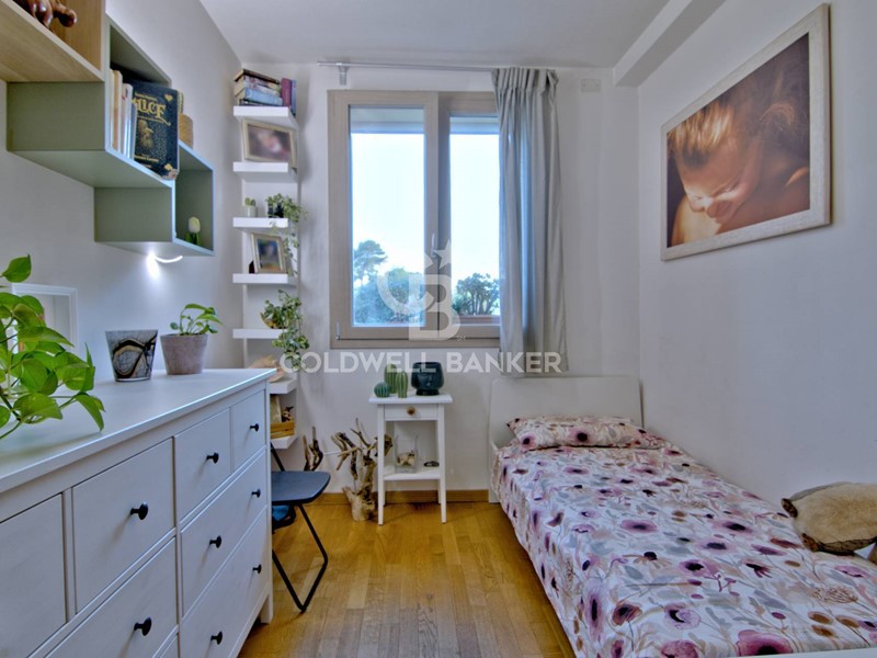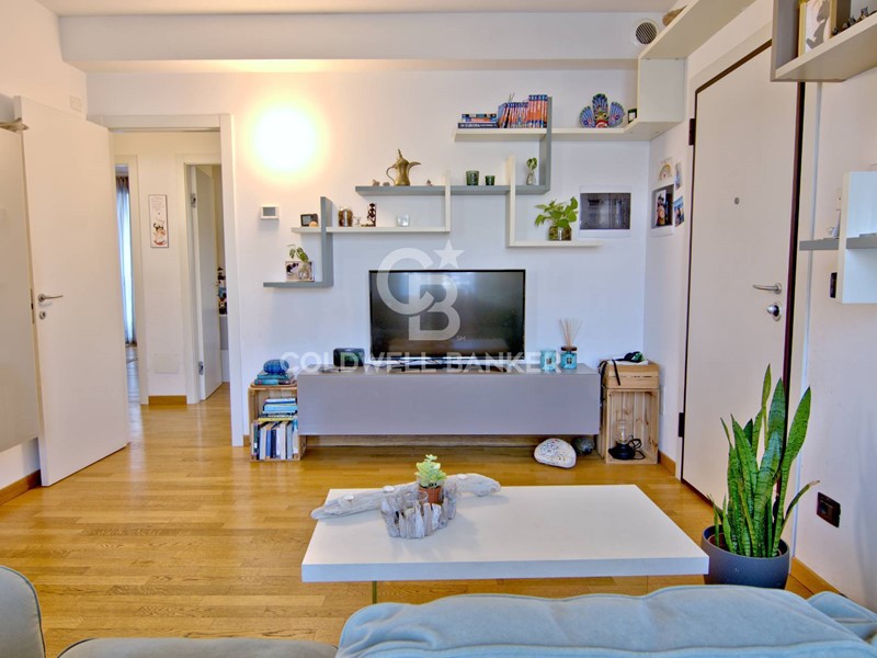 La proprietà è composta da soggiorno con cucina a vista, con accesso diretto allampio terrazzo di proprietà, tre camere da letto, di cui una con bagno privato, e secondo bagno.