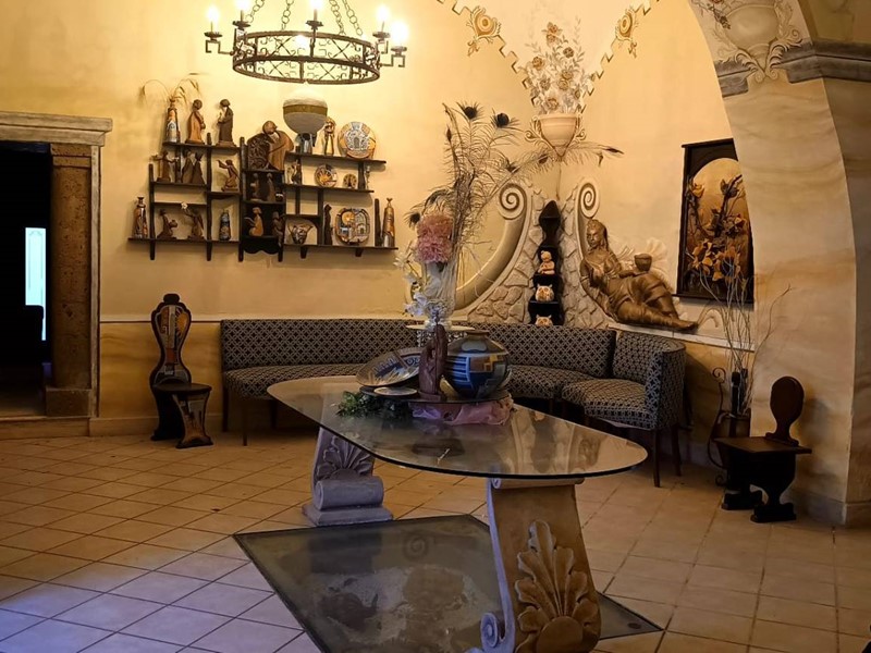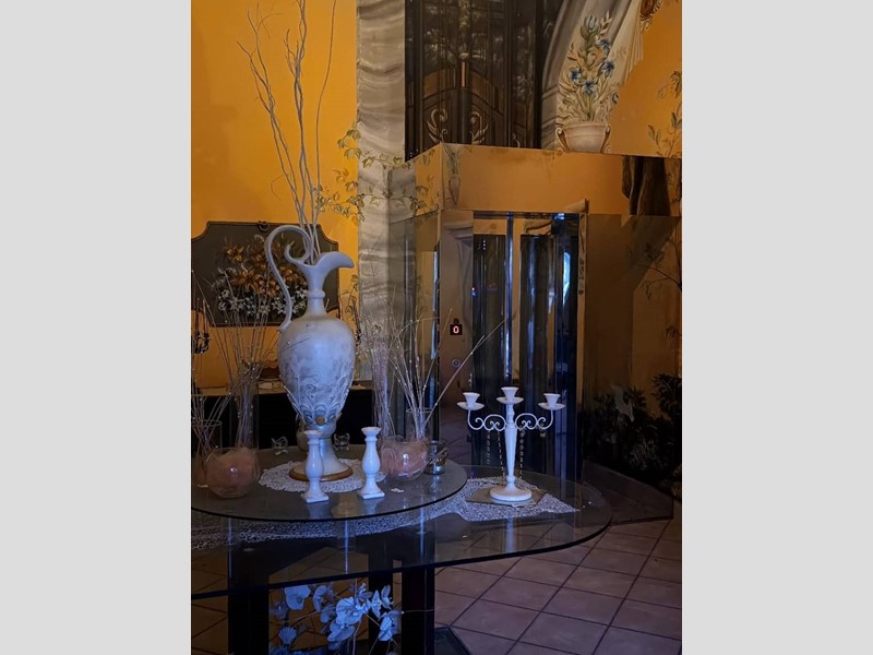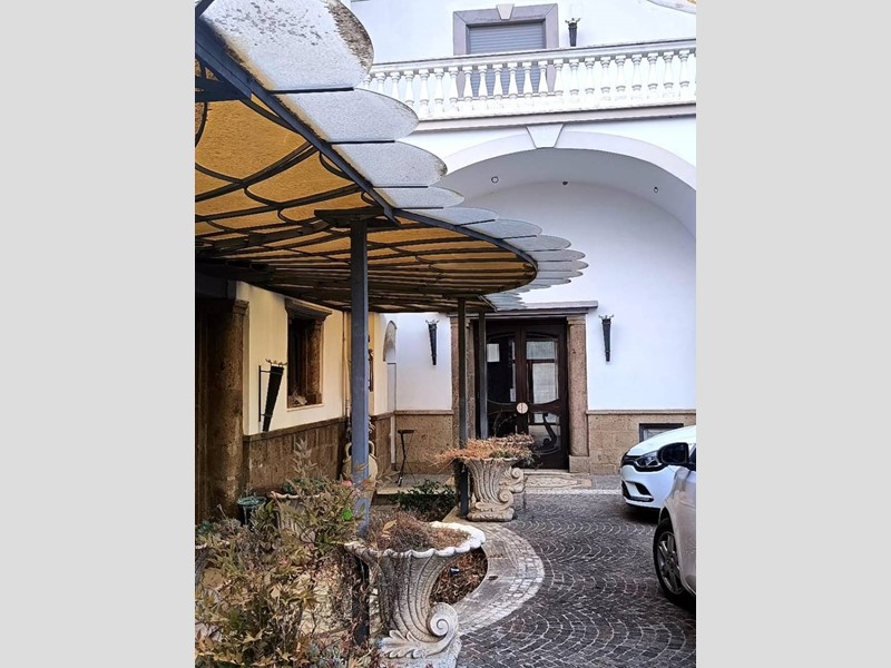 Struttura , alberghiera con due ingressi costituiti da ampi cancelli carrabili a fronte strada stile antico, dai quali si accede allo spazio interno destinato ad area parcheggio ed all' ampio giardino che completa la proprietà.