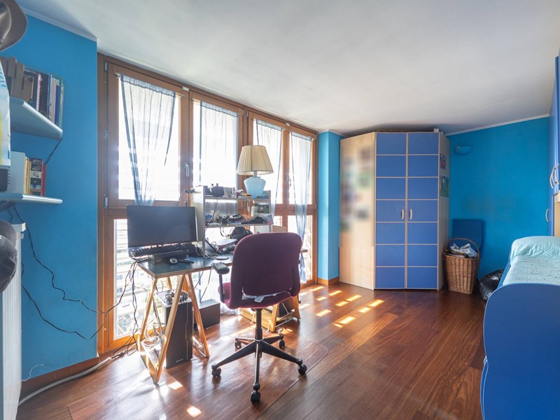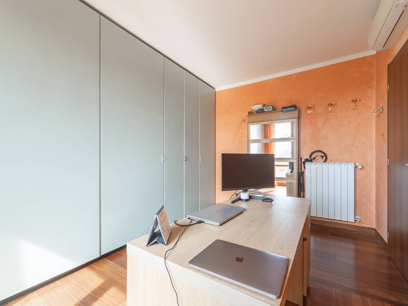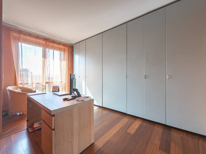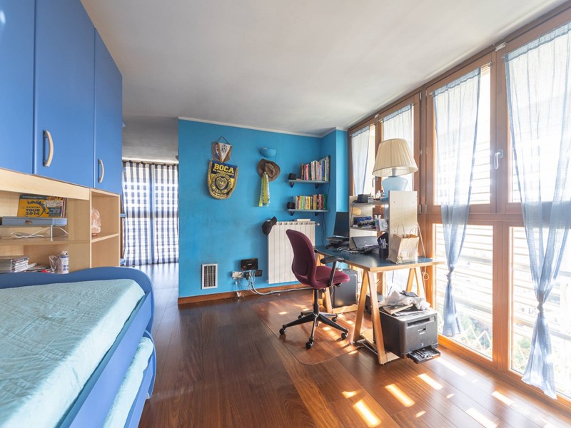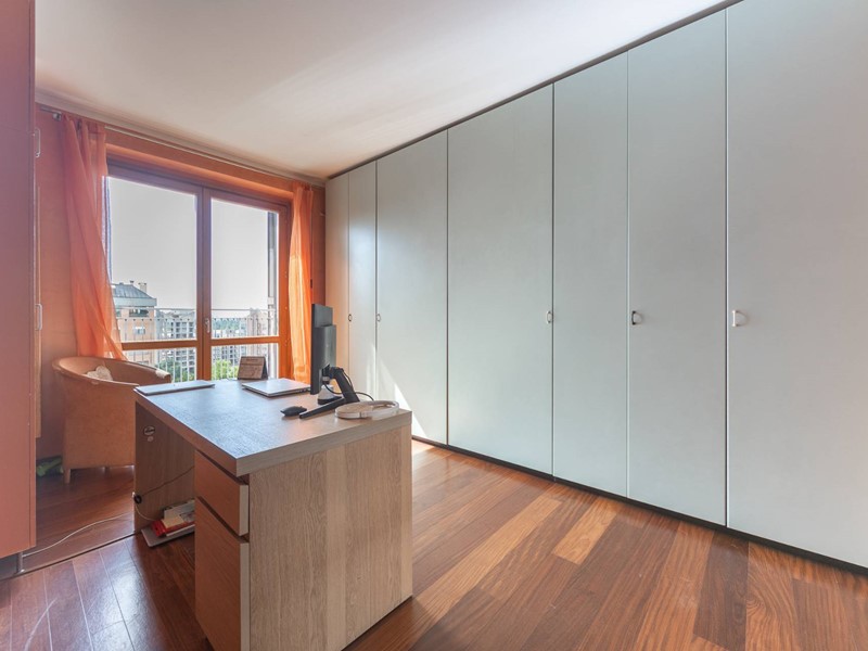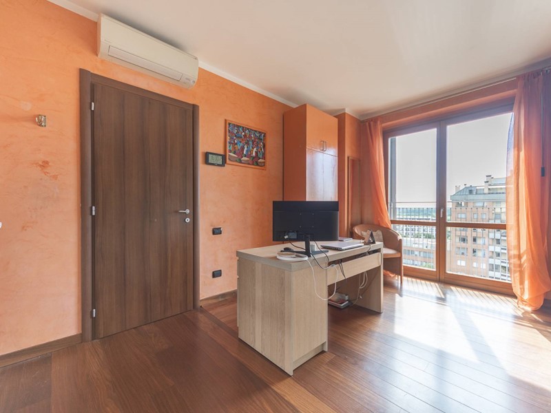 12° PIANO: collegato tramite scala interna, camera matrimoniale con bagno en suite, ampia seconda camera da letto con annessa camera ad uso studio, ampio bagno con vasca con zona lavanderia.
