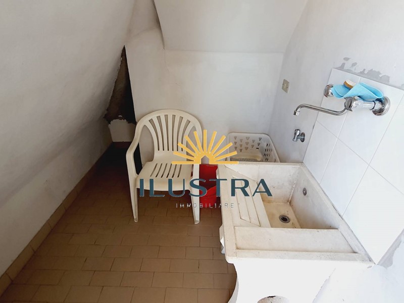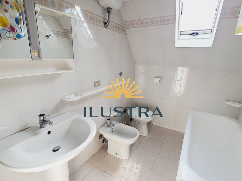 - appartamento mq 66 composto da soggiorno con angolo cottura, una camera matrimoniale, una camera doppia, bagno finestrato con vasca, terrazzo mq 18, ripostiglio sottotetto mq 20. Esposizione sud-est-ovest