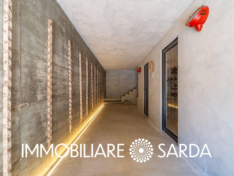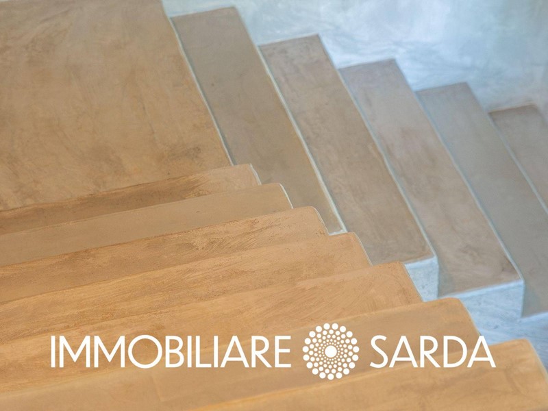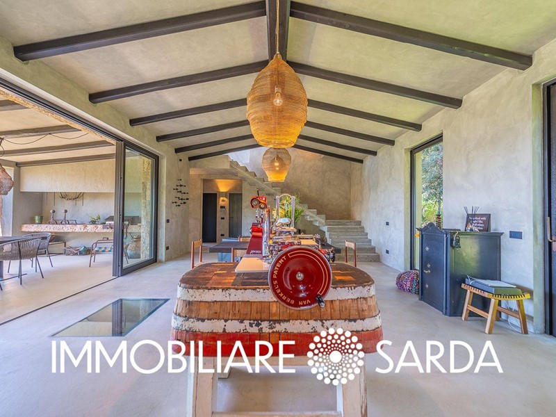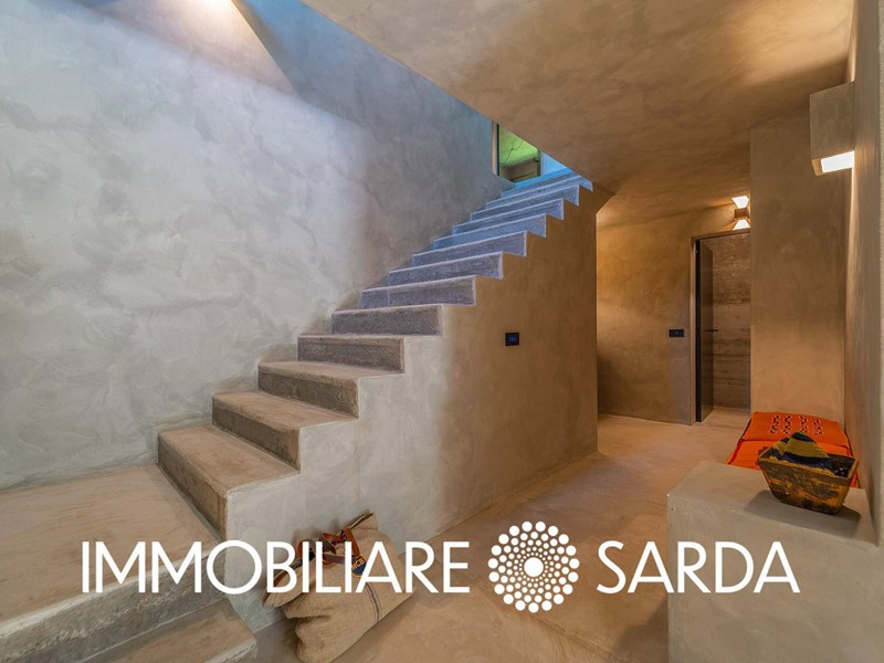 Gli interni sorprendono per il loro stile moderno e raffinato. Materiali a contrasto  come le travi in legno a vista e le linee essenziali del cemento  si fondono in un dialogo elegante tra tradizione gallurese e minimalismo contemporaneo.