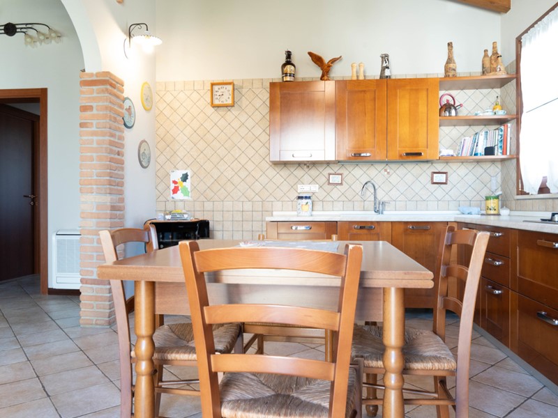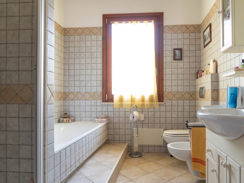 Al piano terra si trovano: un ampio soggiorno di 42 mq con stufa a pellet, l'angolo cottura (con possibilità di ricavare una cucina abitabile), il disimpegno, un bagno finestrato con doccia e vasca, una camera matrimoniale e due camere singole.