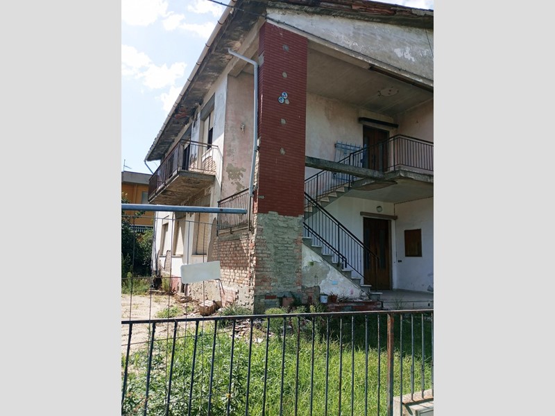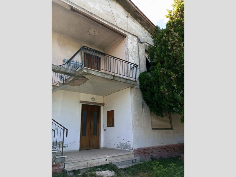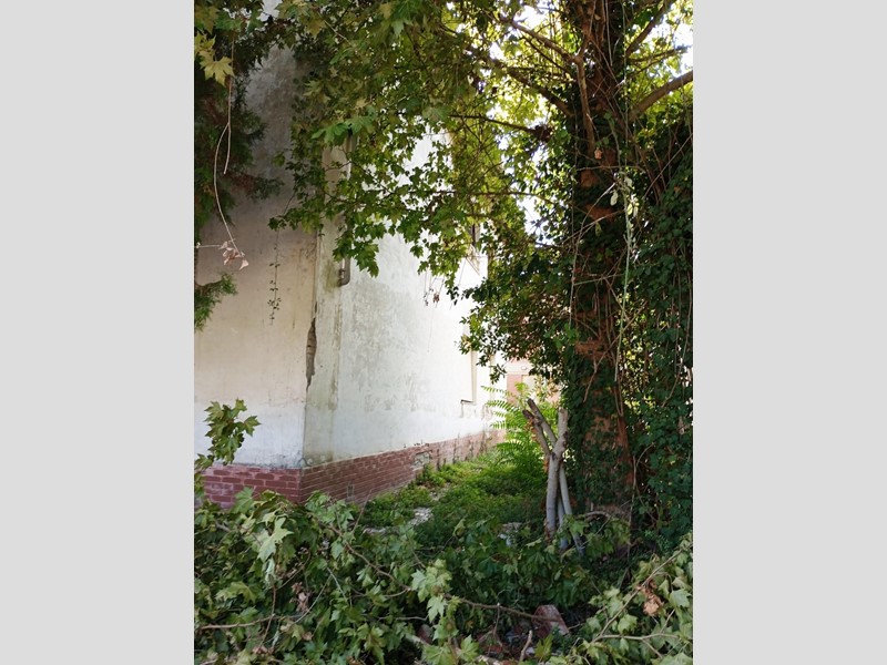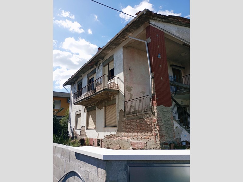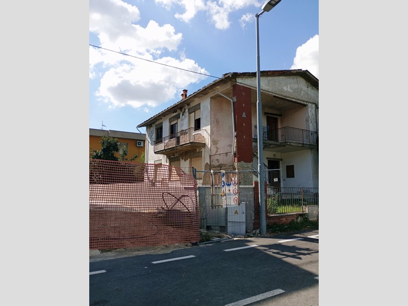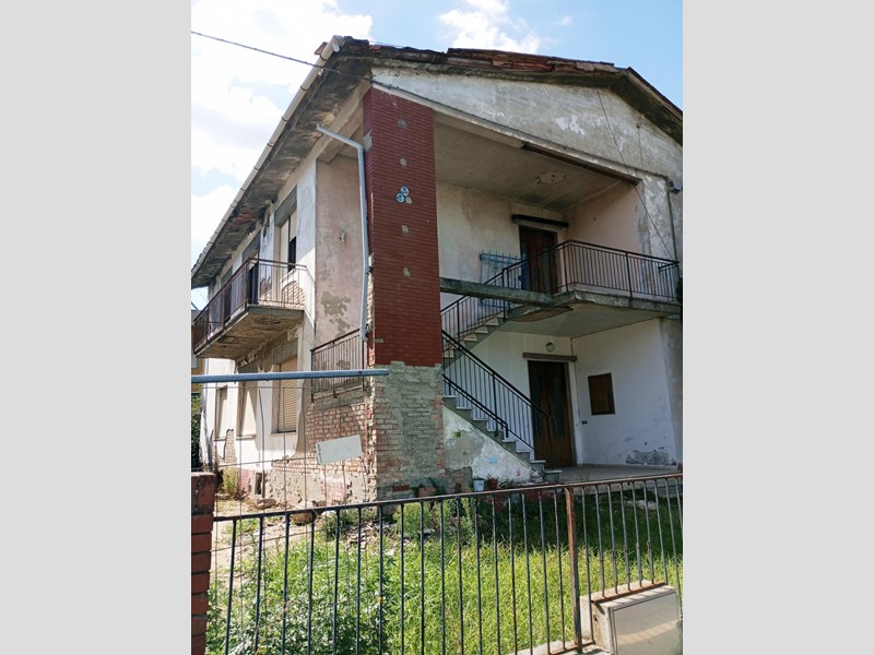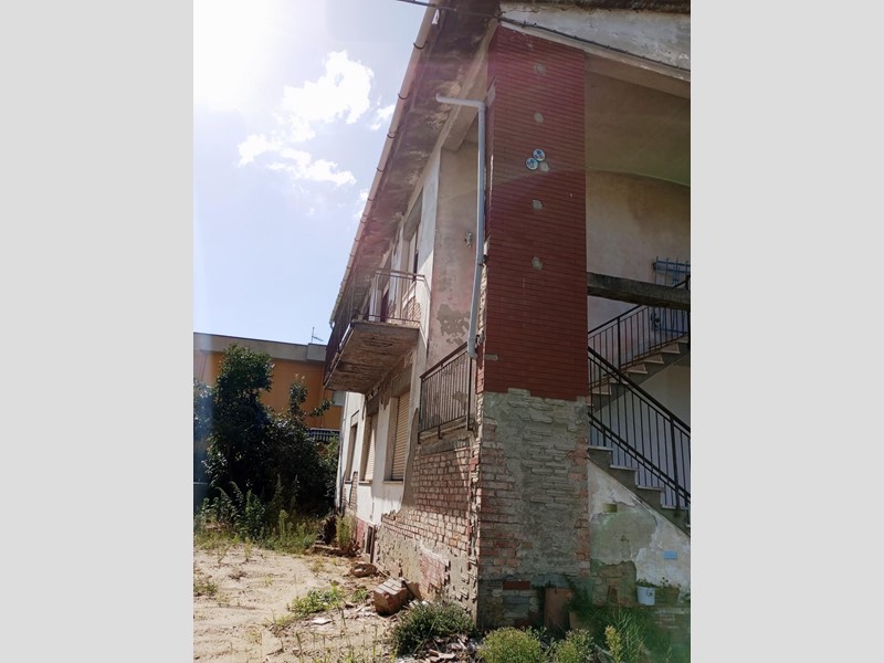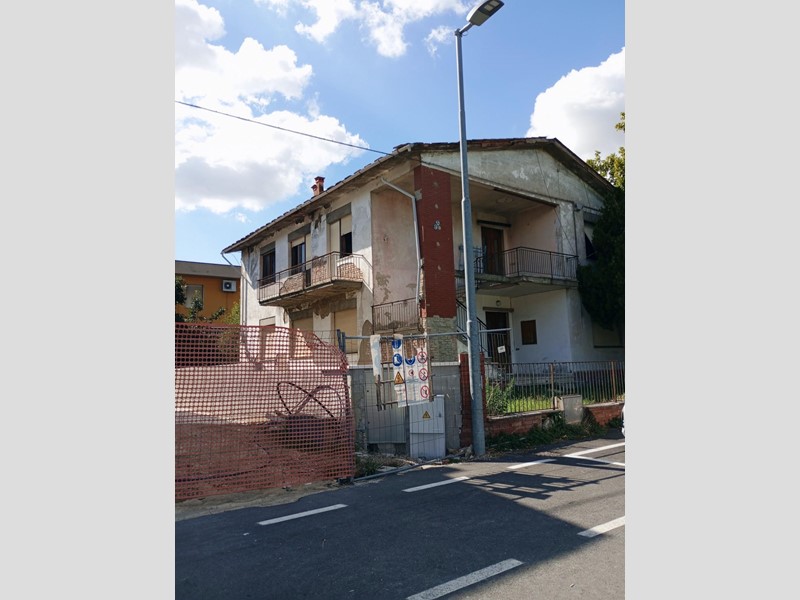 In vendita a San Miniato Basso, un immobile da ristrutturare con ampi spazi esterni. La proprietà è circondata da un'area verde recintata da un muretto, che ne definisce i confini.