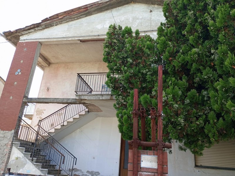 La struttura si sviluppa su due piani. Al piano terra è presente una porta che conduce a una loggia in comune. Una scala esterna, posizionata a sinistra dell'ingresso principale, porta al primo piano, dove un piccolo terrazzo coperto funge da accesso all'abitazione.