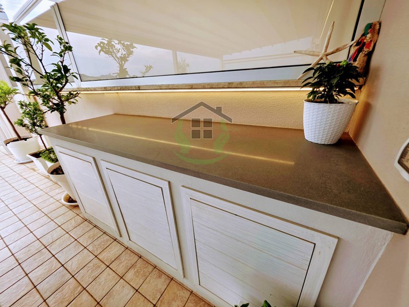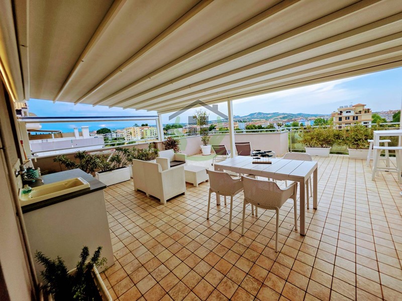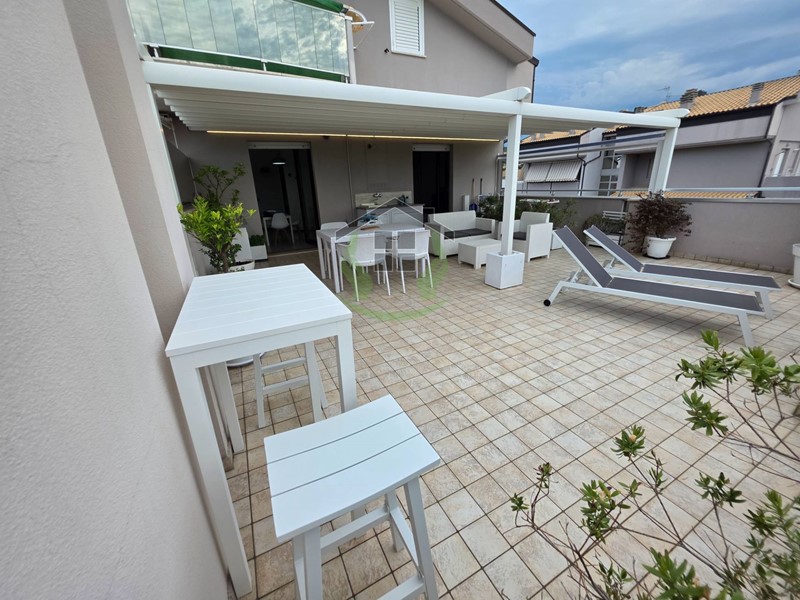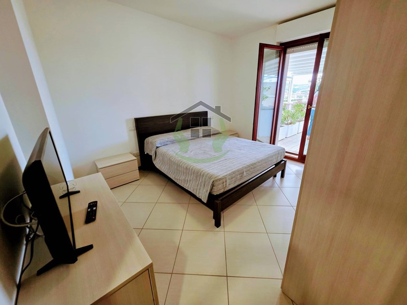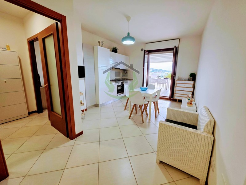 L'unità si presenta in ottime condizioni senza lavori da effettuare, internamente cosi suddivisa: ingresso su soggiorno con angolo cottura dallo stesso si ha accesso all'ampio terrazzo abitabile completo di pergolato di ottima manifattura, dallo stesso si gode di bellissima vista panoramica sia sul mare sia sulle colline circostanti, l'accesso al terrazzo si ha anche dalla camera matrimoniale, presente inoltre seconda cameretta oltre che bagno con box doccia e aspiratore.
