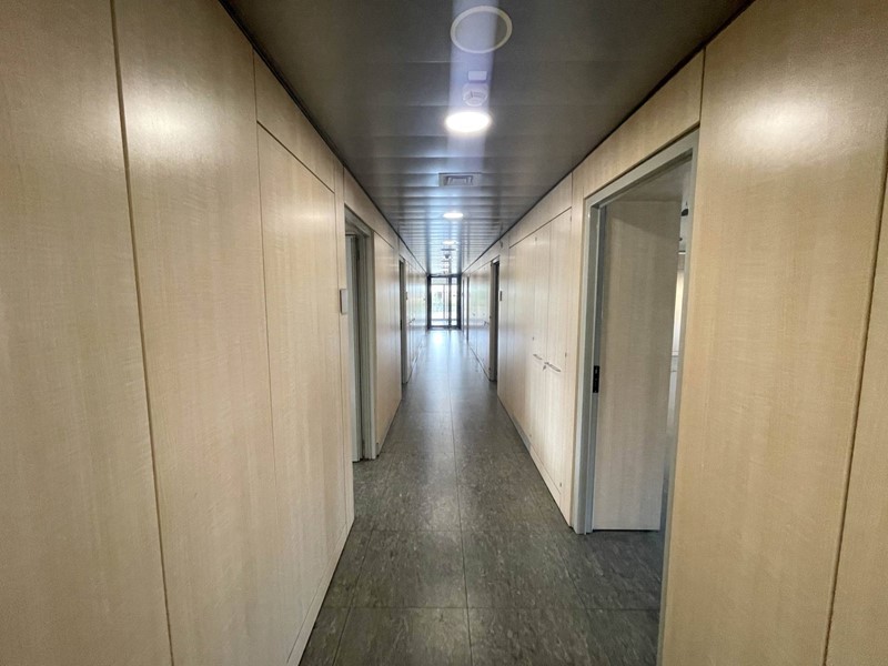In palazzina di recente costruzione ad uso uffici, bell'ufficio al settimo piano, di circa 300 mq., con pareti attrezzate che separano gli spazi (attualmente dieci stanze), pavimenti galleggianti, controsoffitti con corpi illuminanti, bagni uomini, donne e disabili. Aria condizionata e riscaldamento centralizzato (i costi sono compresi nelle spese condominiali indicate in circa 800 euro mensili). Il palazzo è dotato di accessibilità ai disabili e doppi ascensori. Posizione molto comoda alla tangenziale. Locazione soggetta ad IVA
