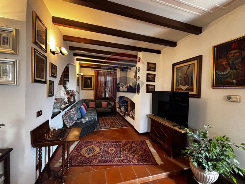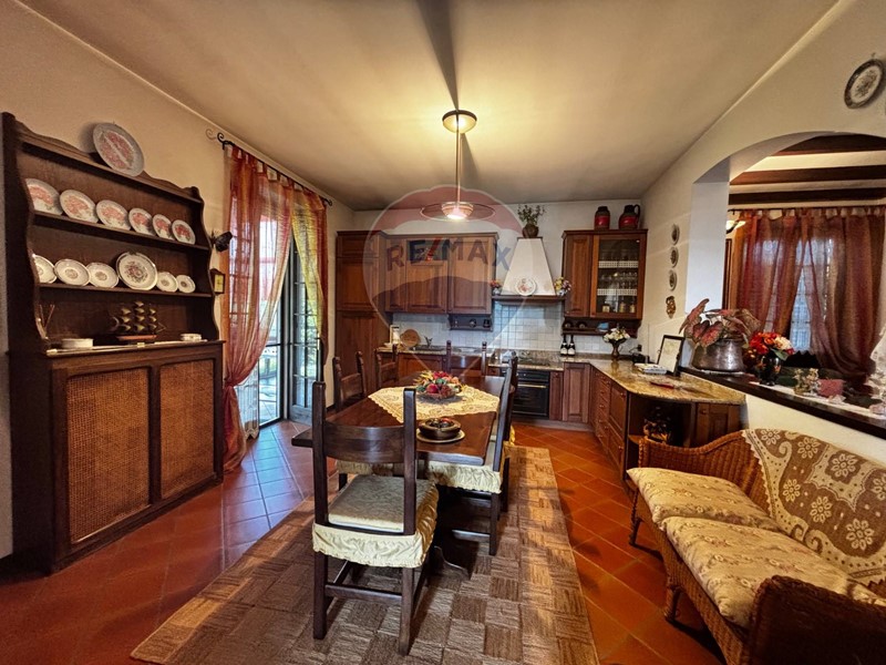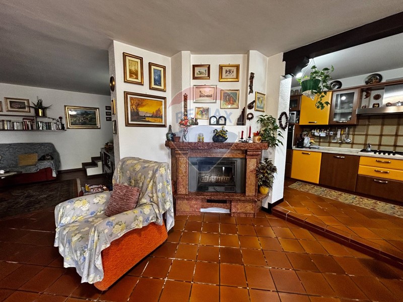 Appena entriamo troviamo un elegante doppio soggiorno con camino e la cucina abitabile, perfettamente tenuta e funzionale.