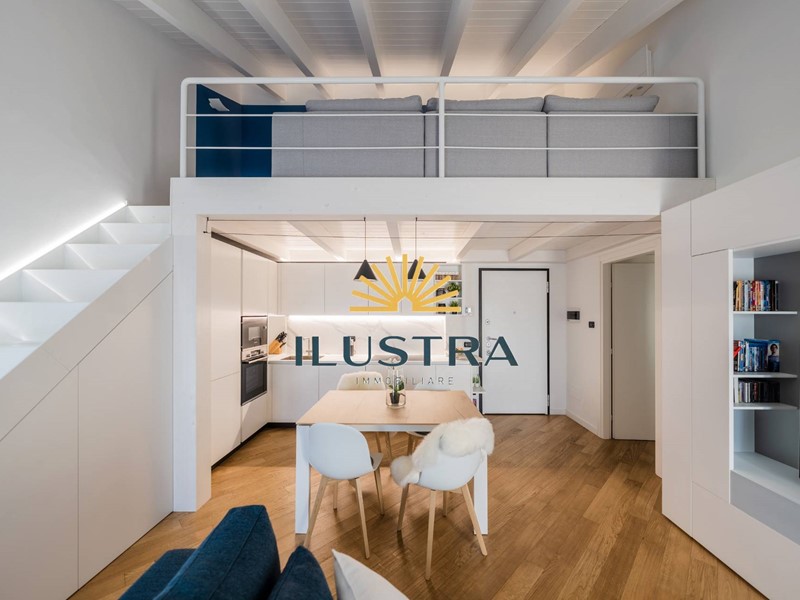 Il progetto prevede un accogliente soggiorno con cucina a vista, due camere (una matrimoniale e una doppia con cabina armadio) e un bagno finestrato. Il soppalco, di 25 mq, è ideale per ricavare una camera singola e uno studio, con accesso a un piccolo terrazzino che si affaccia sul mare.
