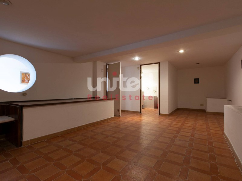 Al piano seminterrato, completamente indipendente, si accede da una comoda scala esterna ed è composto da una sala con camino, suddivisa in due ambienti, un angolo cucina e un'intercapedine ispezionabile.
