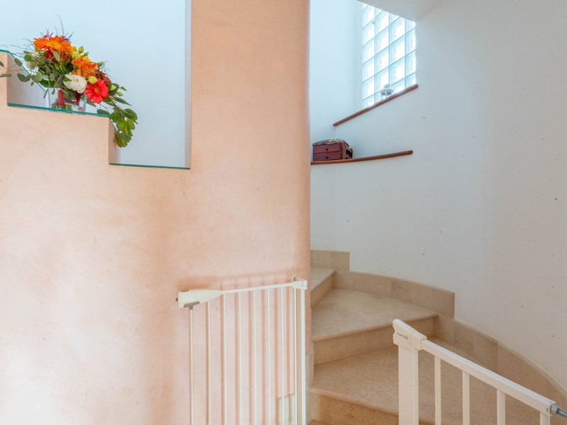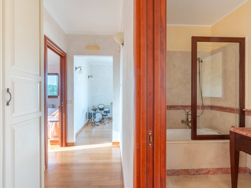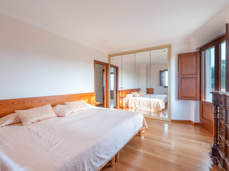 Il primo piano è composto da quattro camere da letto di generose dimensioni, ciascuna con accesso ad un balcone, che offre viste pittoresche sulla piscina e sul giardino.