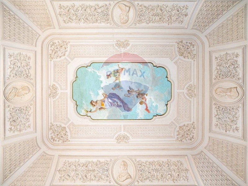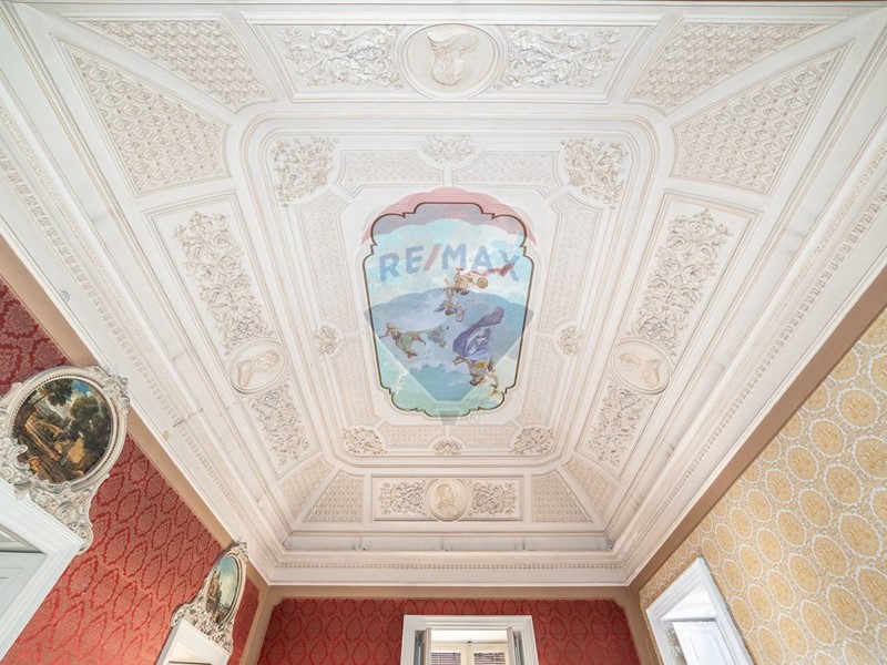 Upon entering, one is immediately immersed in an atmosphere of grandeur: reception halls adorned with original frescoes, soaring decorated ceilings, historic floors, and finely hand-painted doors. Large windows flood the rooms with natural light and frame extraordinary views of the square and the Church of San Francesco dAssisi allImmacolata, enhancing the unique character of this residence.