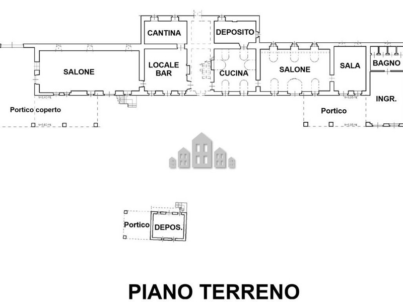 La struttura che la ospita si sviluppa su due livelli: al piano terra, anticipato da due portici, di cui uno coperto e perfetto per gli ospiti, troviamo la reception, diversi saloni accoglienti, la cucina attrezzata, i bagni e i locali deposito. Sempre al piano terra è presente anche un deposito separato, anchesso con portico, utile come magazzino o spazio aggiuntivo per la gestione quotidiana. Al primo piano si aggiungono le camere e un ulteriore bagno, che permettono di ampliare lutilizzo della proprietà.