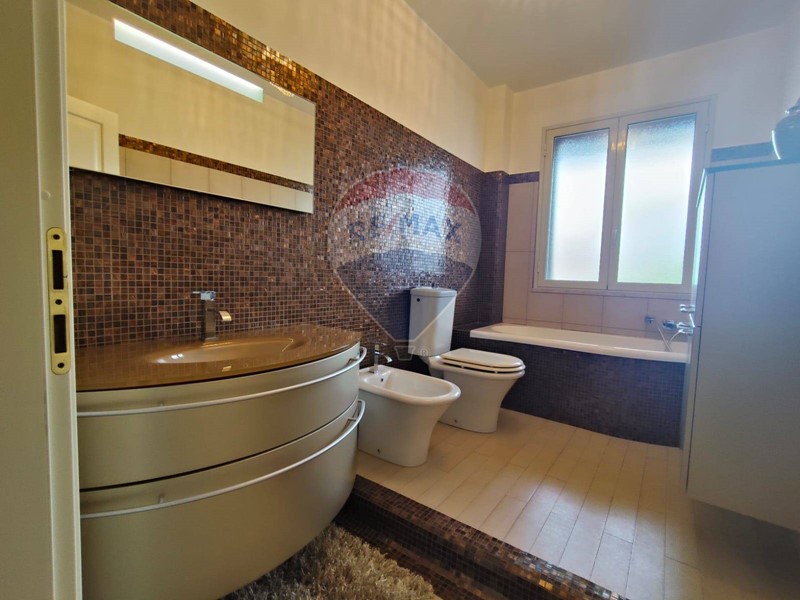 Limmobile, rifinito con materiali di pregio (gres porcellanato, stucco veneziano, rivestimenti Bisazza), offre una superficie complessiva di circa 200 mq calpestabili, inclusi balconi angolari spaziosi e terrazzati di circa 80 mq con splendida esposizione e aperture scorrevoli che assicurano luminosità a tutti gli ambienti.
