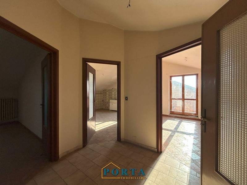 Al primo piano si sviluppa il primo appartamento composto da ingresso su disimpegno, due camere da letto, soggiorno, cucina abitabile con affaccio su ampio terrazzo panoramico, bagno e ripostiglio.