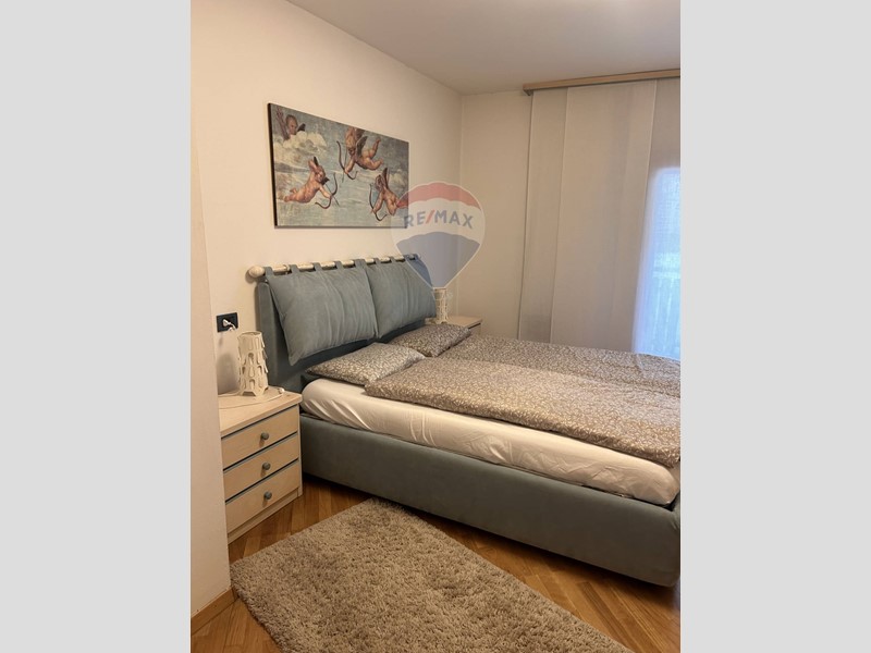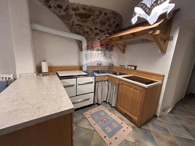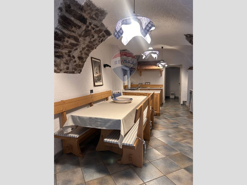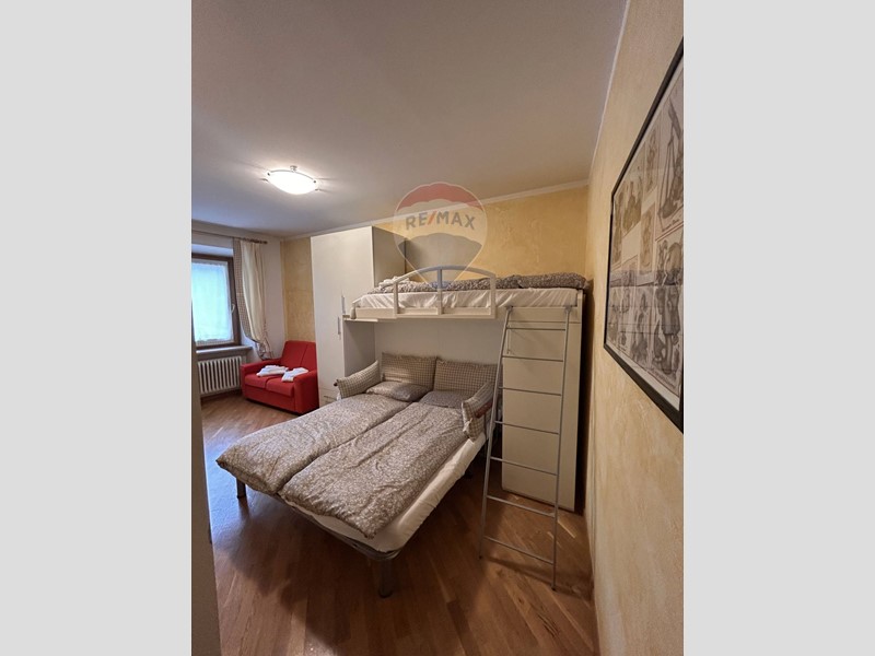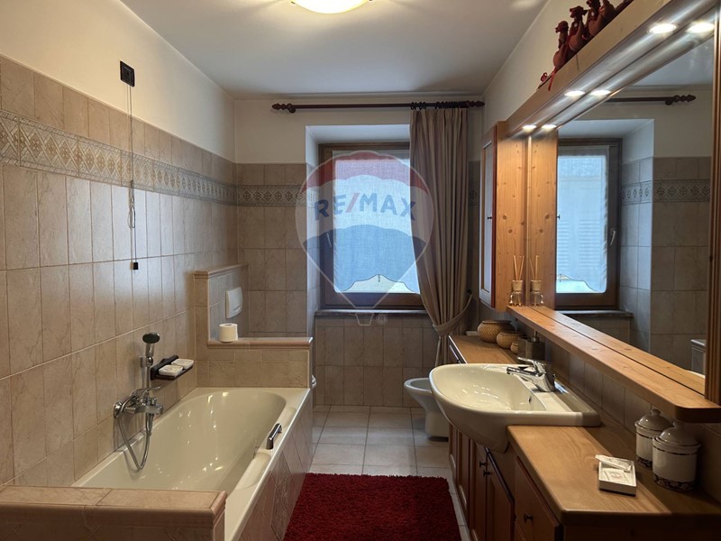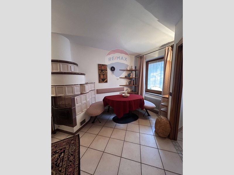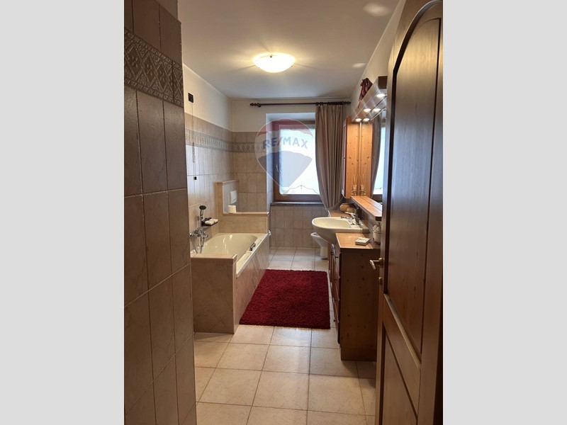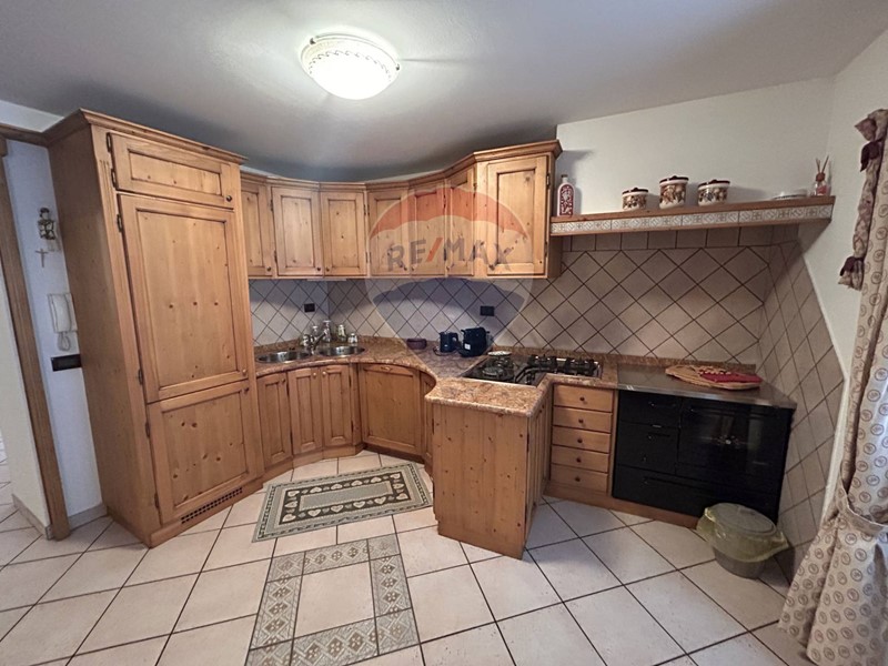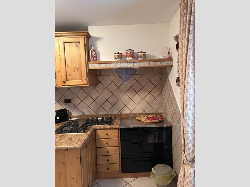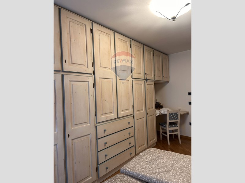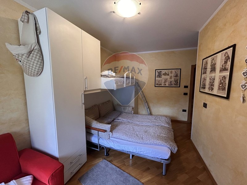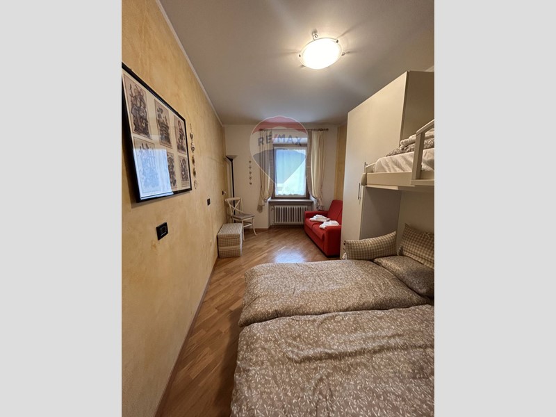 La posizione è straordinaria. L'appartamento si sviluppa su 2 livelli e offre un bel salone soggiorno con una bellissima stufa a ole, una cucina abitabile con zona pranzo, una prima spaziosa camera matrimoniale, un bagno con vasca, corridoio, una seconda camera con 2 e/o 3 letti singoli un secondo bagno con doccia. La scala a chiocciola porta al piano terra dove si apre una ampia tavernetta completamente arredata, una camera da letto e un bagno con doccia, un angolo allestito come lavanderia e un grande sgabuzzino come cambusa. L'accesso alla terrazza è comodo e ampio. Dalla zona di sotto si accede con una scala e una porta che divide al garage Tra i dettagli di pregio dell'immobile troviamo gli arredi in legno eleganti e caldi, pavimenti in gres porcellanato di alta qualità, la casa è completamente arredata