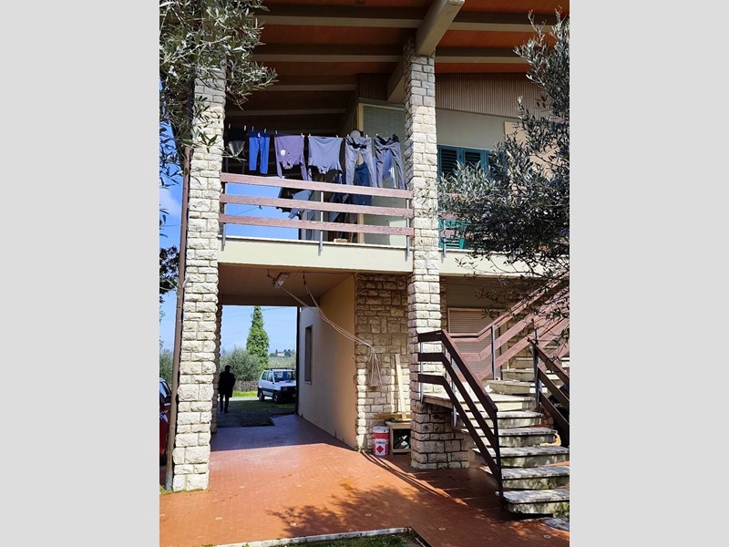 Rif. 1393 - Montespertoli = = = N O S T R A E S C L U S I V A = = = Alle porte del paese, a circa 500 ml dal centro in zona super panoramica, vendesi Villa Padronale unifamiliare libera su quattro lati, di complessivi mq 480 ca. composta da quattro locali ad uso magazzino per complessivi mq 190 ca e ad un loggiato coperto al piano terreno ed un appartamento di mq 190 ca con accesso da rampa scala esclusiva esterna al piano primo. L' appartamento è composto da un grande balcone/loggiato da cui si accede all' ingresso, da un grande salone ad uso soggiorno, da un locale tinello con annesso cucinotto e da un locale ad uso ripostiglio, oltre ad un disimpegno, a due grandi camere matrimoniali e a due locali ad uso bagno-wc, entrambi finestrati ed un locale soffitta di mq 100. La villa è dotata di un ampio giardino circostante della superficie di mq 4.000 ca. corredato da un ulteriore appezzamento di terreno della superficie di mq 6.000 ca. con numerose piante di olivo. Possibilità di suddividerla in più appartamenti con minima spesa e di acquistare un ultreriore appezzamento di terreno. Disponibile da subito.