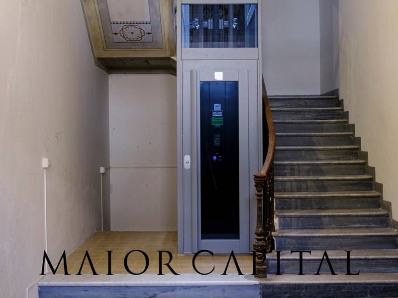 Un elegante ascensore idraulico, moderno e silenzioso, accompagna direttamente al piano, creando un piacevole contrasto tra innovazione e fascino retrò.