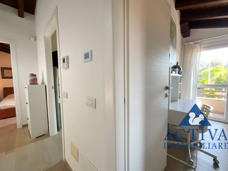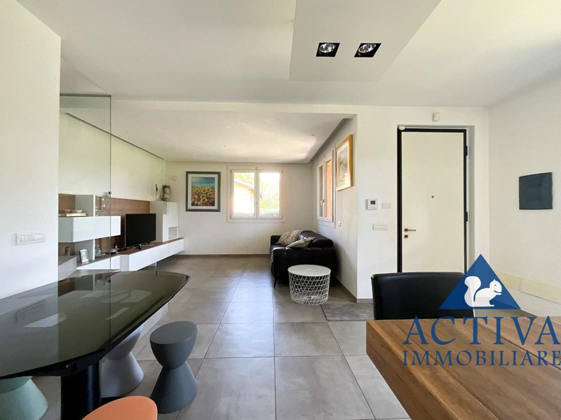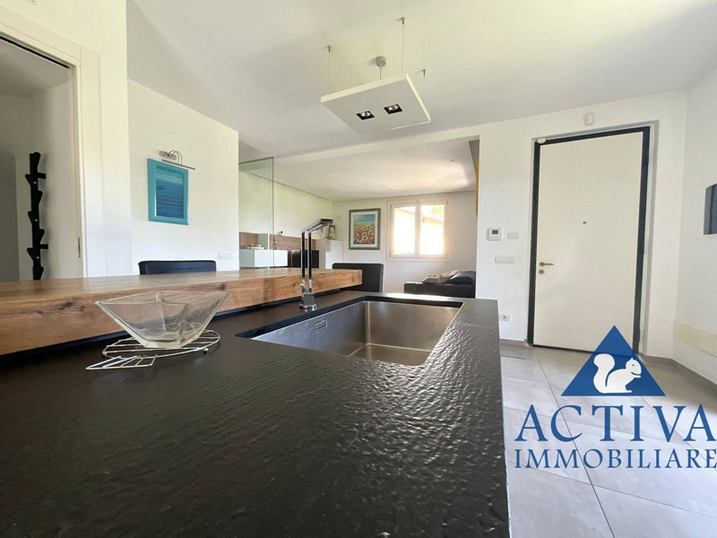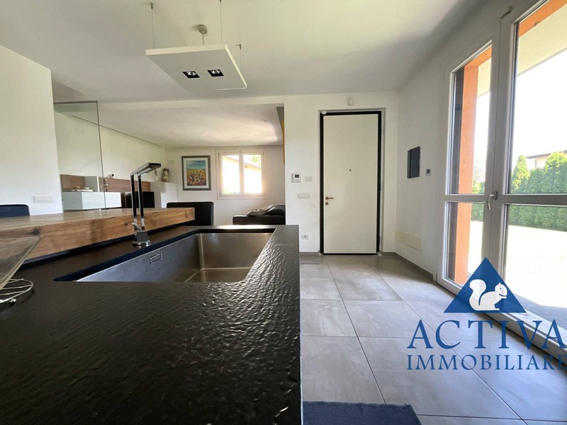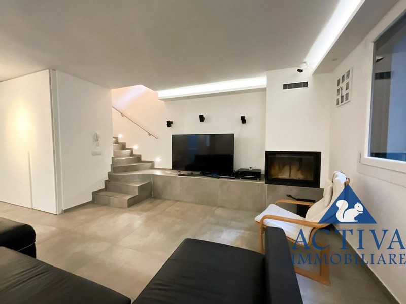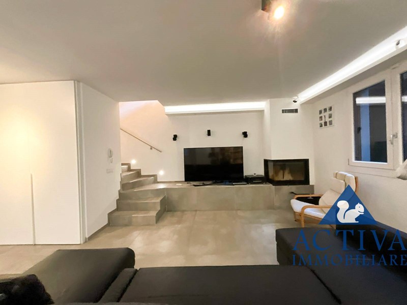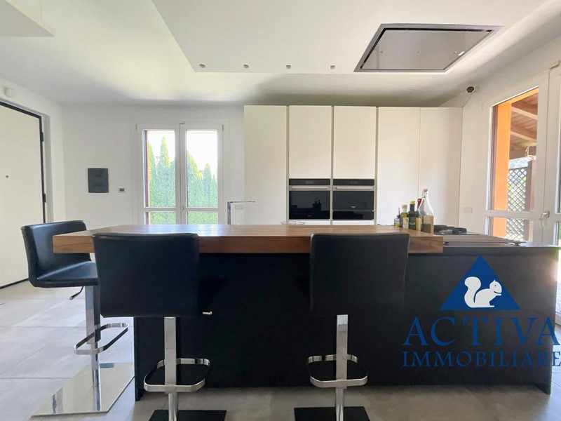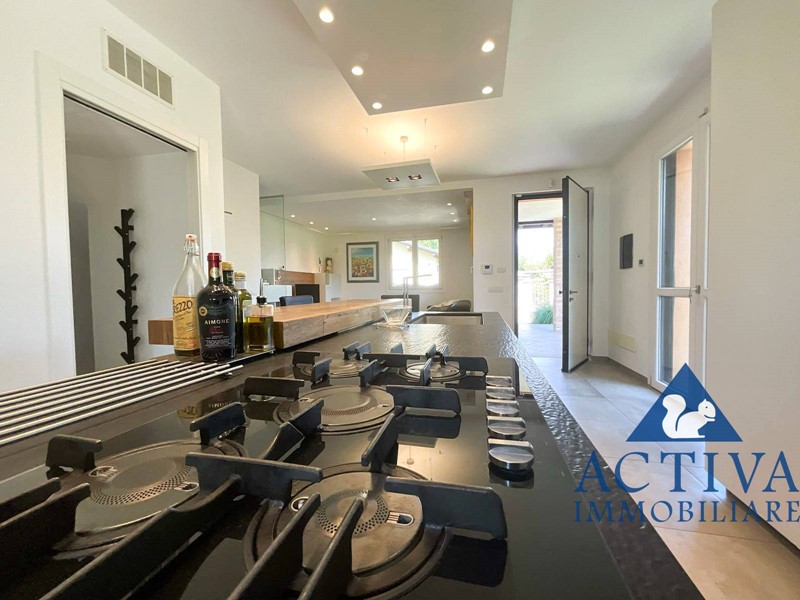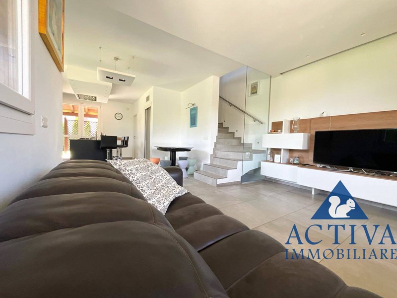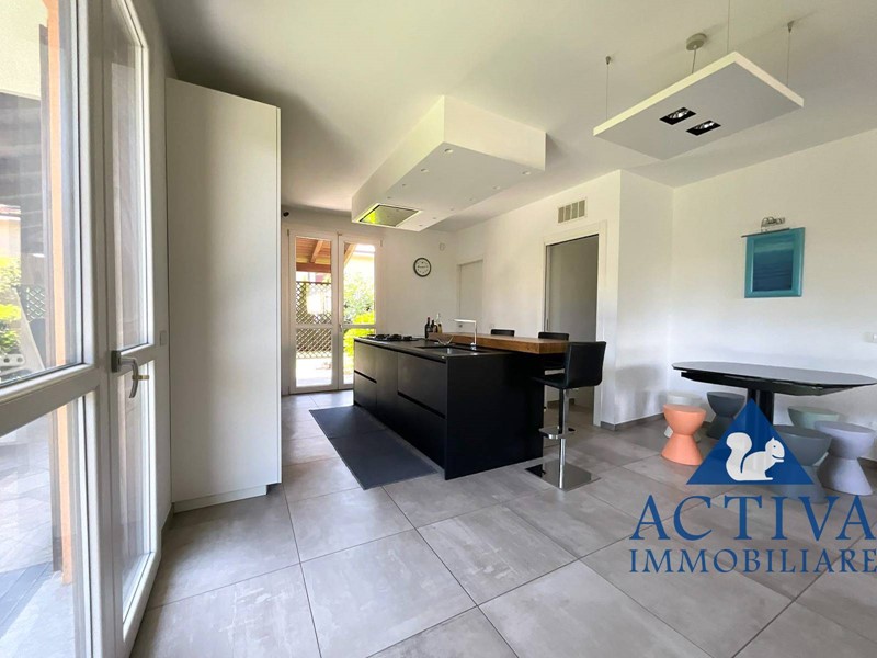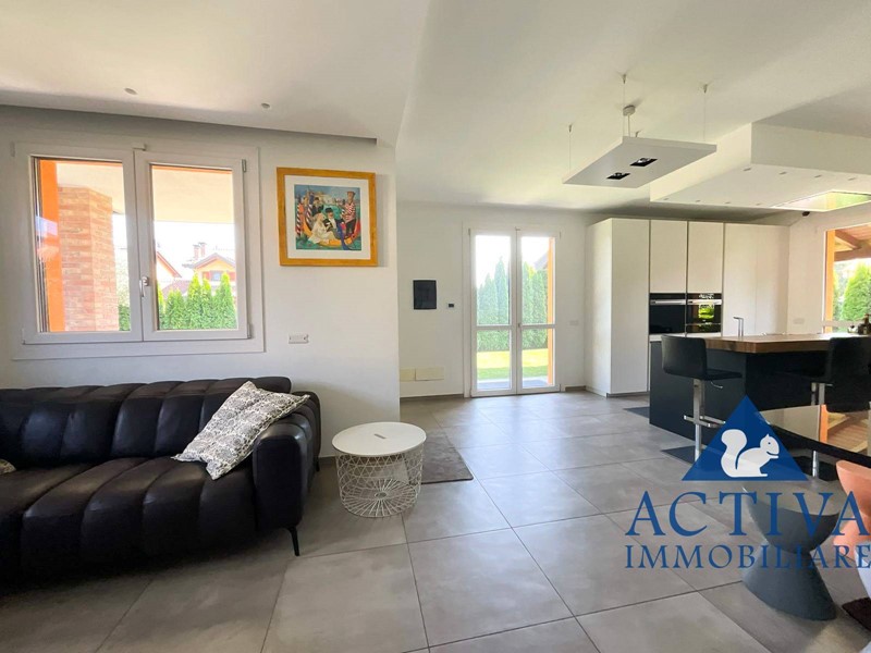 La cornice di questa villa è un meraviglioso portico che partendo dallingresso si prolunga ampliandosi sulla zona retrostante per godere al meglio del verde esterno le cene conviviali. Al suo interno invece locchio si perde in una moderna e luminosa zona living organizzata con intelligenza e tocco di design per offrire praticità ogni giorno; la cucina a vista pensata con isola centrale acquistabile a parte insieme agli arredi su misura dellinterrato, dialoga con il portico coperto di circa 30 mq e con il grande giardino piantumato, trasformando lesterno in una naturale estensione della casa. Il bagno di servizio completa il piano.