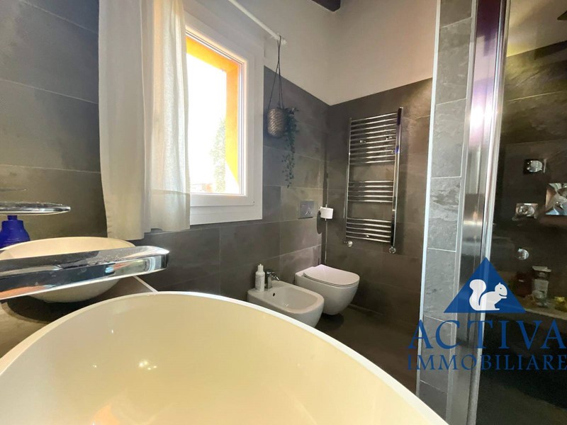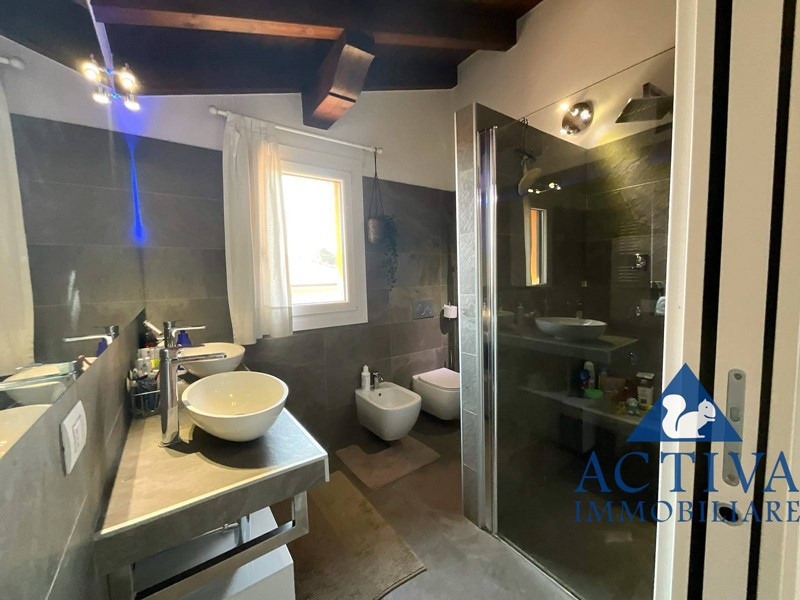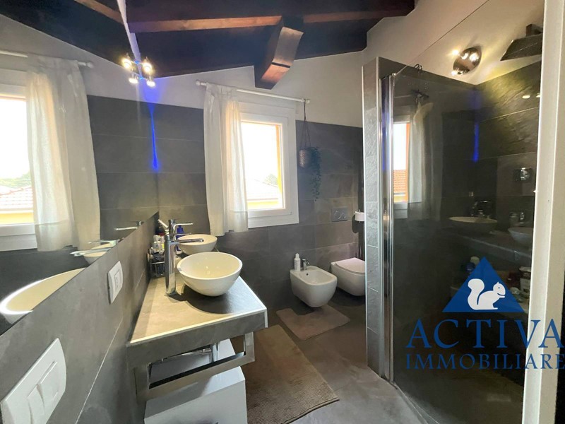 La tecnologia è di livello superiore, ottima lesposizione Sud-Est-Ovest, riscaldamento a pavimento con raffrescamento con sistema ibrido (caldaia a condensazione, pompa di calore e solare termico) dotata di un termostato per piano, deumidificazione per ogni livello, serramenti in PVC bicolore con doppio vetro e zanzariere, gelosie in PVC e lucernario, giardino con illuminazione a timer e sensore pioggia, vasca idromassaggio, allarme completo con protezione perimetrale, radar e telecamere, garage privato a chiusura telecomandata