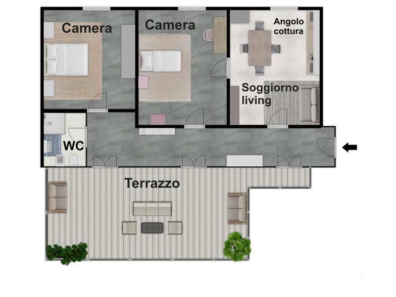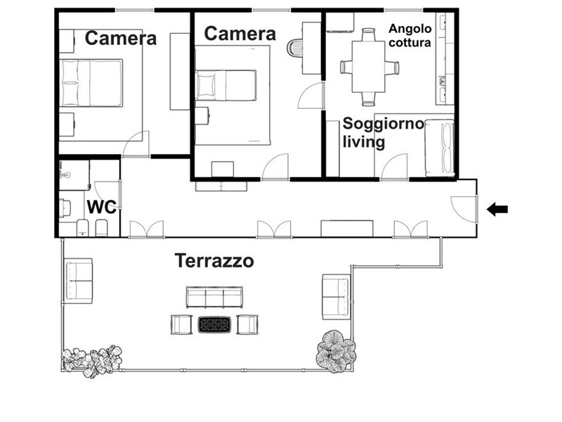 - un terrazzo a livello di circa 45 mq, ampio e vivibile, perfetto per momenti di relax, cene all'aperto e attività all'aria aperta in ogni stagione;