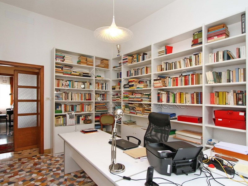 Al piano primo, accessibile tramite un'elegante doppia scala esterna, si sviluppa l'abitazione principale, composta da: ingresso, studio, salone con accesso a terrazzino, ampia cucina abitabile con annessa dispensa, disimpegno zona notte, quattro camere da letto, cabina armadio e due bagni.