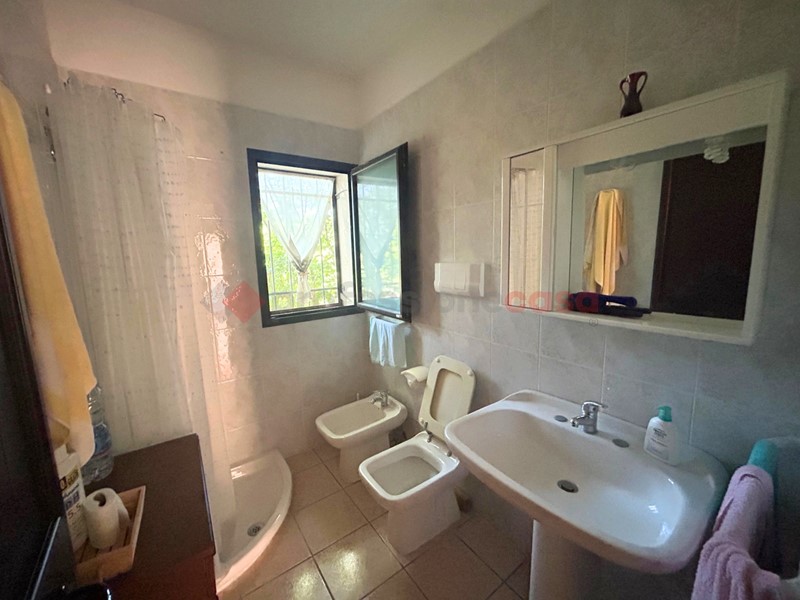 La villa, libera su quattro lati, ha una superficie di circa 72 mq e si presenta in buone condizioni generali. Qualche scalino conduce alla veranda di circa 22 mq, perfetta per godersi momenti di relax all'aria aperta. Da qui si accede all'abitazione, dove ci accoglie un ampio e luminoso open space con angolo cottura e camino. Un disimpegno separa la zona giorno dalla zona notte, composta da due camere da letto e un bagno.