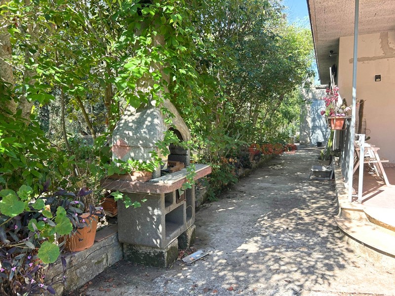 Adiacente all'abitazione si trova un garage di circa 16 mq, collegato internamente alla zona giorno, oltre a un vano tecnico di circa 6 mq. La proprietà è circondata da un ampio giardino di circa 2.000 mq, che garantisce privacy e spazio verde a disposizione. Una scala esterna consente l'accesso alla terrazza, estesa per tutta la superficie dell'abitazione, ideale per essere sfruttata come solarium o area relax.