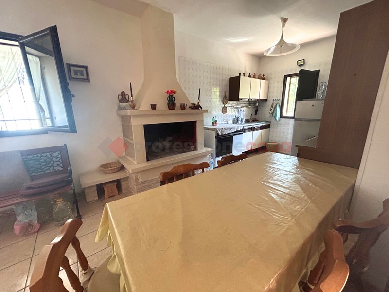 La villa, libera su quattro lati, ha una superficie di circa 72 mq e si presenta in buone condizioni generali. Qualche scalino conduce alla veranda di circa 22 mq, perfetta per godersi momenti di relax all'aria aperta. Da qui si accede all'abitazione, dove ci accoglie un ampio e luminoso open space con angolo cottura e camino. Un disimpegno separa la zona giorno dalla zona notte, composta da due camere da letto e un bagno.