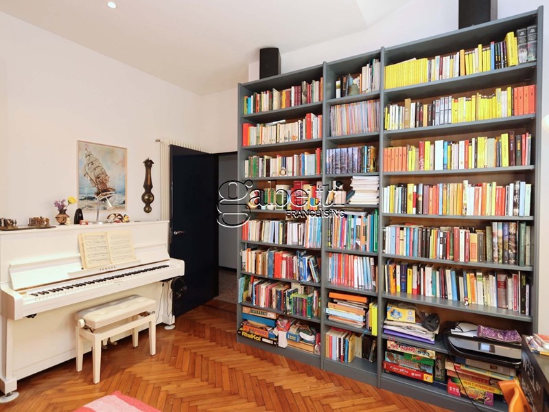 Dotato di riscaldamento autonomo e impianto di climatizzazione, l'appartamento presenta finiture di pregio, tra cui: pavimenti in parquet nel soggiorno e nelle camere da letto, lastroni di graniglia posata in opera nell'ingresso e nello studio, infissi con vetrocamera, porte laccate e scorrevoli in vetro, termoarredo in tutti gli ambienti, climatizzatore nelle stanze principali.