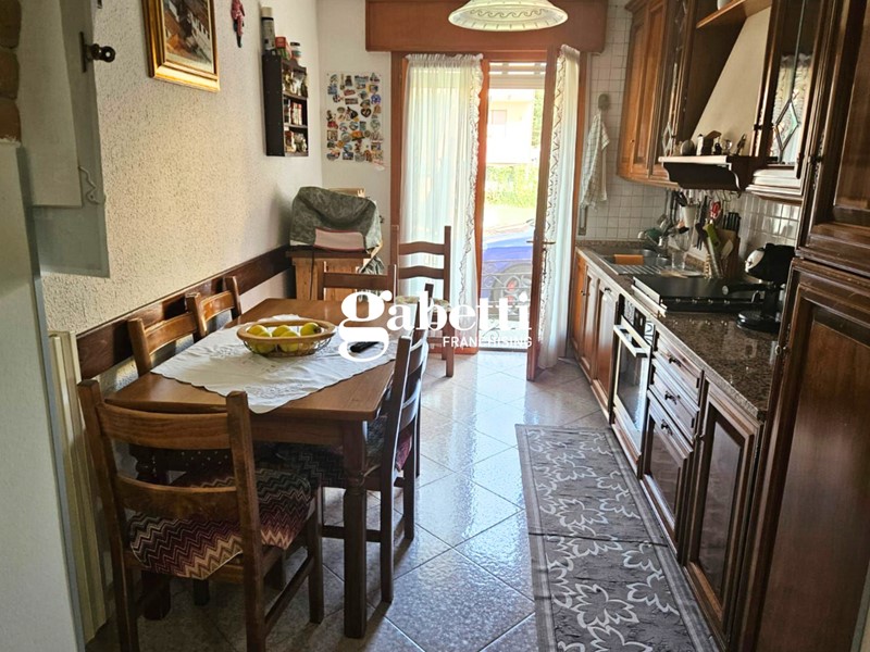 L'abitazione si compone di ingresso, soggiorno, pranzo, cucina, due camere da letto, due bagni finestrati, poggiolo e garage. Di particolare interesse lo scoperto privato che ospita un secondo fabbricato indipendente al grezzo, con un locale interrato di circa 200mq ed una parte già edificata al piano terra, offrendo la possibilità di creare un ulteriore abitazione di generose metrature.