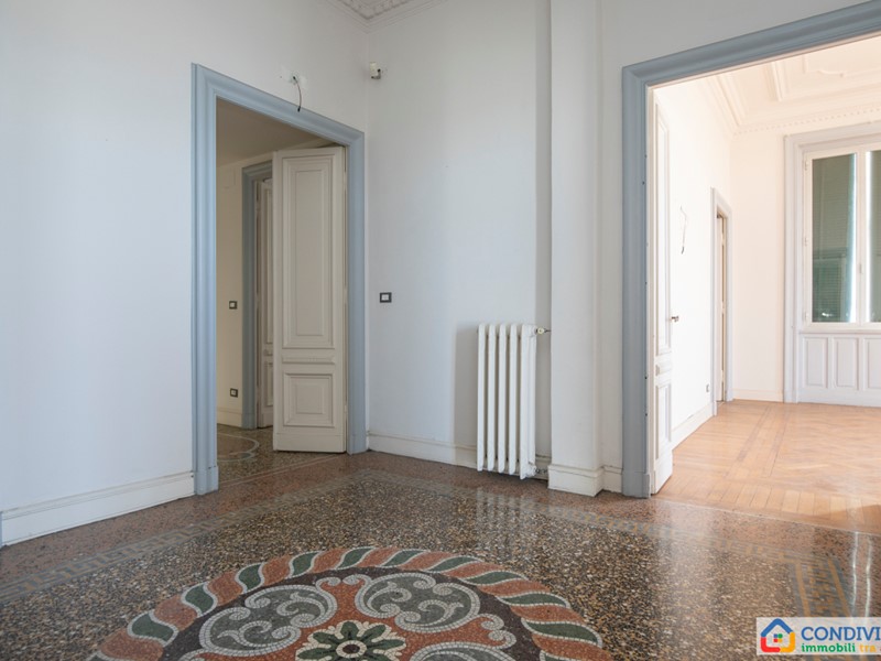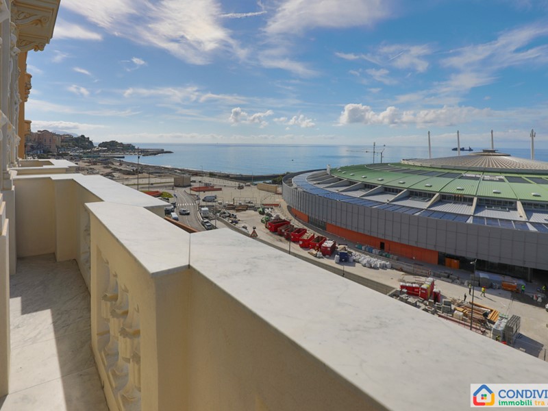 In uno dei palazzi Liberty più eleganti di Genova, con servizio di portineria e facciate appena restaurate, proponiamo in vendita un esclusivo appartamento di 310 mq (11,5 vani), situato al secondo piano altissimo e affacciato direttamente sul mare e sul nuovo Waterfront di Levante, il grande progetto di riqualificazione urbana che sta trasformando la città.