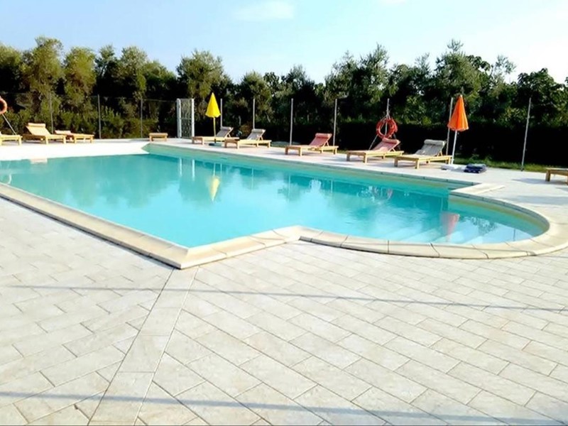 L’immobile è situato all’interno di una struttura ricettiva e viene venduto con quattro posti auto scoperti e utilizzo della piscina.