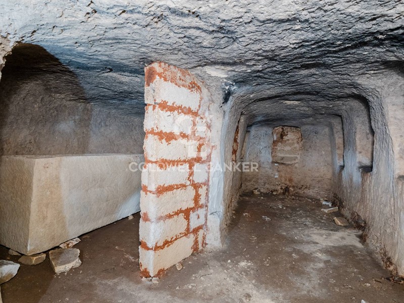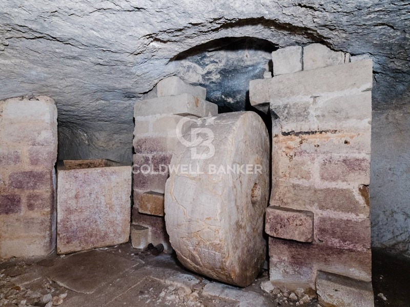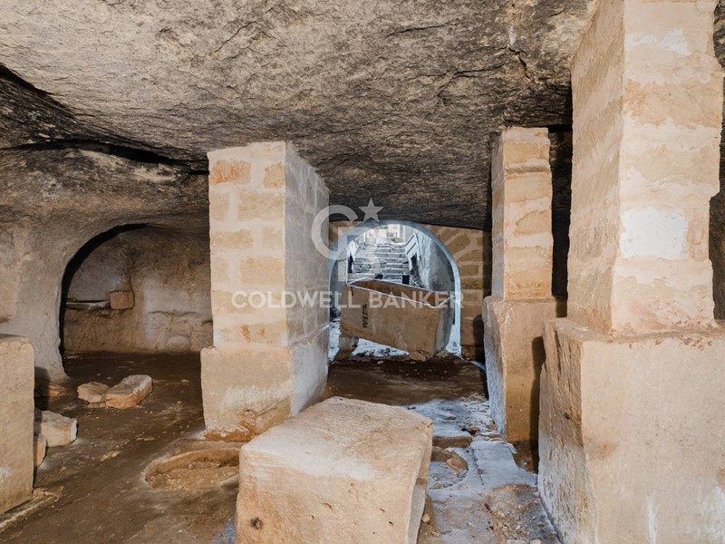 Al piano terra trovano posto ambienti di deposito di 131 mq e un laboratorio di 107 mq, mentre nel cuore della proprietà si apre la suggestiva cantina di circa 200 metri quadrati che custodisce un frantoio ipogeo con le antiche macine in pietra, una vera testimonianza della tradizione olearia salentina.