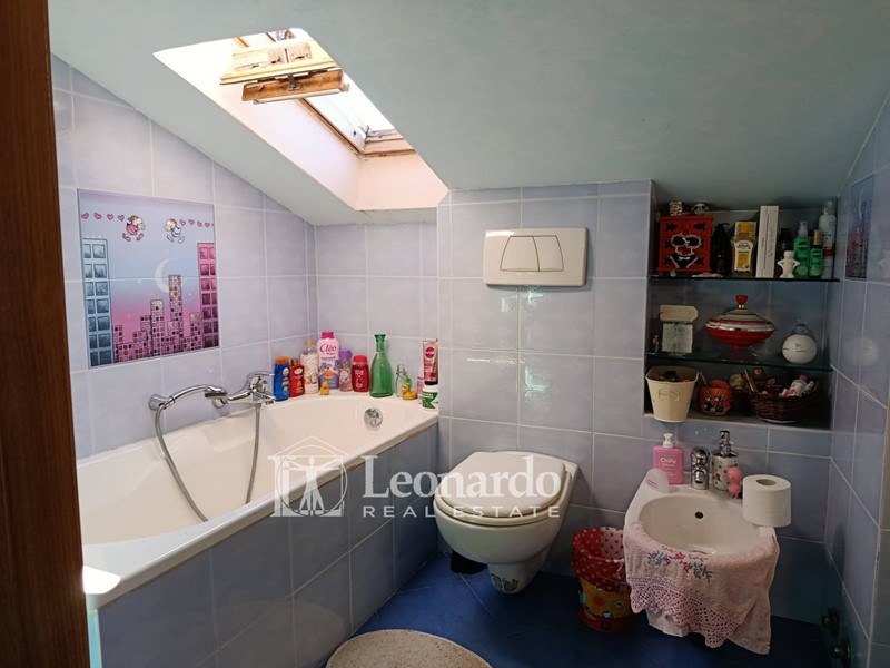 Al primo piano, troviamo le due camerette, un bagno con vasca ed un ampio vano disimpegno mansardato.