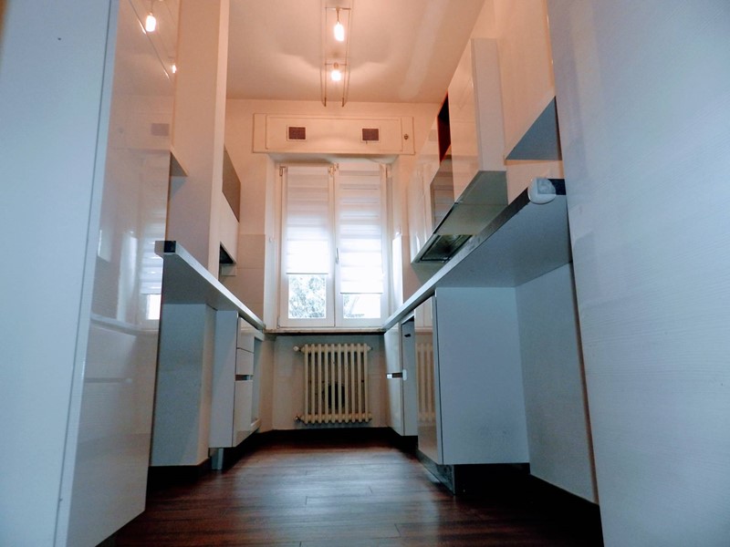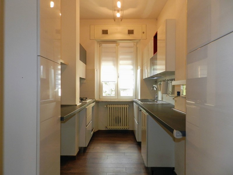 La cucina è ottimamente organizzata in due file parallele, dotata di tutti i comfort necessari per preparare pasti deliziosi.